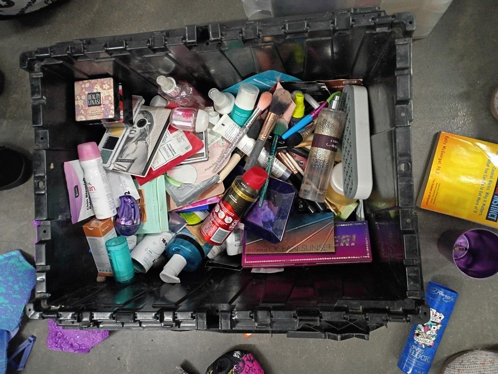 Makeup pallets face products makeup brushes perfumes lotion this box has name brand tons of product