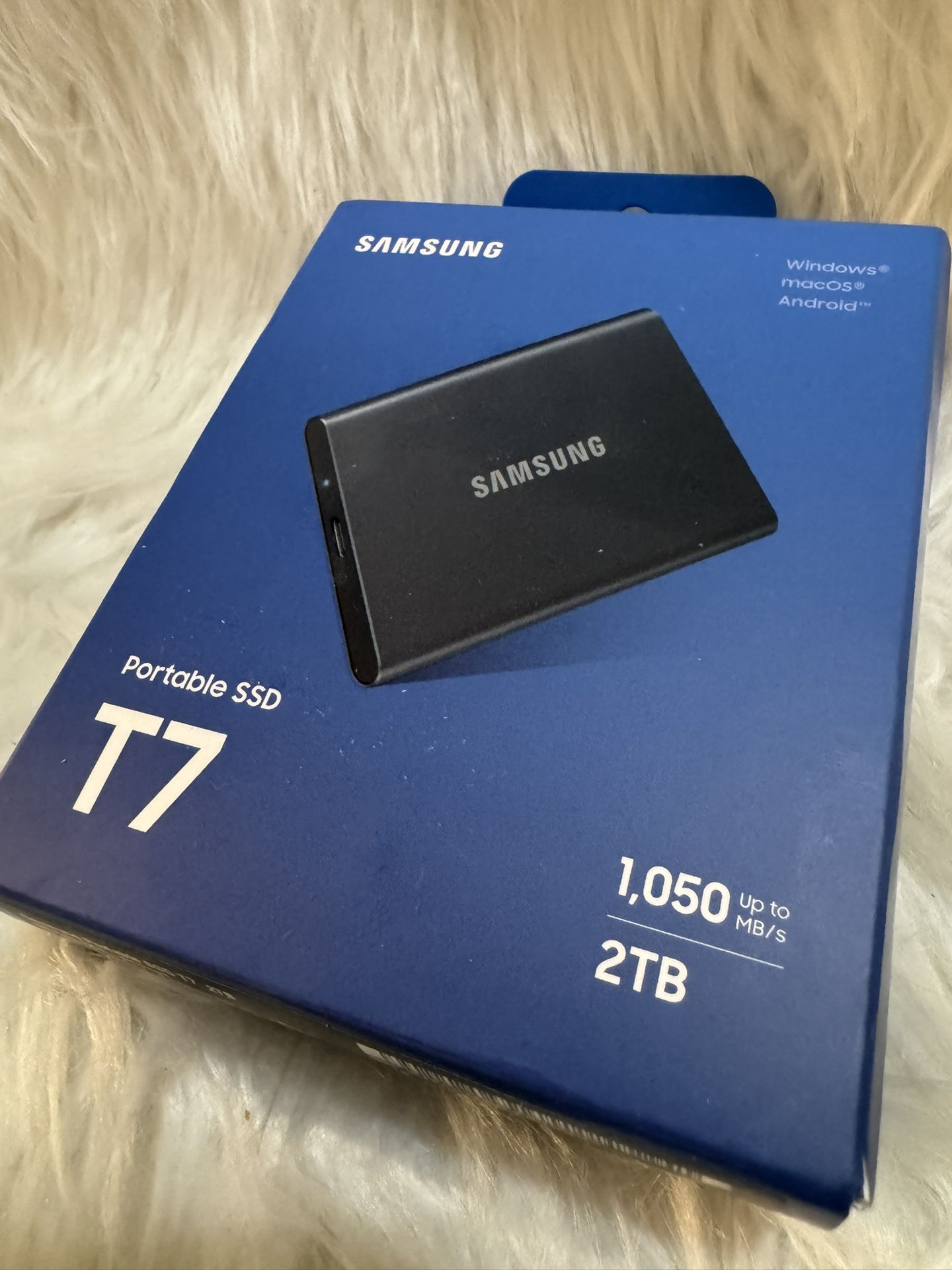 BRAND NEW SEALED Portable Storage: This pocket-sized SSD offers fast, reliable data storage for large files, suitable for business documents, games, or movies. • Rapid Transfers: Achieve blazing fast sequential read/ write speeds of up to 1,050/1,000 MB/s using USB 3.2 Gen 2 and PCle NVMe technology. • Durable Construction: Its solid aluminum unibody and lack of moving parts make it resistant to shocks and falls from up to 6ft. • Optimal Temperature: Advanced Dynamic Thermal Guard technology prevents overheating, maintaining an optimal temperature even during high-speed operations. • Sleek Compactness: Roughly the size of a credit card and weighing only 2 ounces, it offers easy portability. • Simple Configuration: Embedded software assists with password setup and firmware updates for PC, Mac, or Android mobile devices. • Broad Compatibility: The T7 is compatible with various devices including PC, Mac, Android devices, and gaming consoles. • Secure Encryption: Features 256-bit AES encryption to protect data against unauthorized access. FIX PRICE PICK UP ONLY CASH ONLY