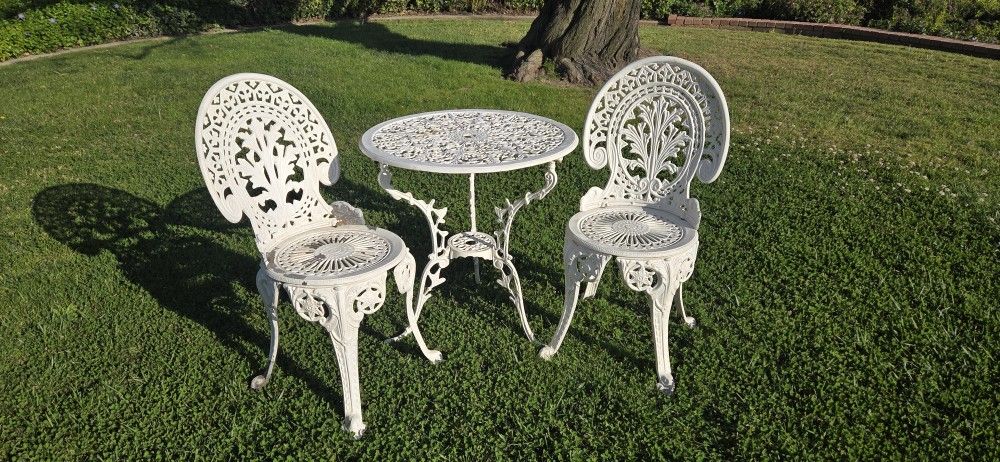 Ornate Cast Aluminum 3-Piece Outdoor Bistro Set - Vintage Style