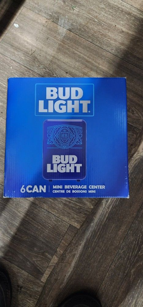Brand new budlight mini fridge holds 6 can can be run on house or 12v electric $35