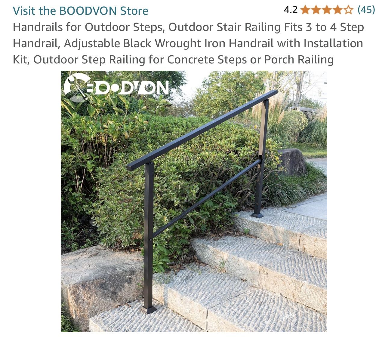 Handrails for Outdoor Steps, Outdoor Stair Railing Fits 3 to 4 Step Handrail, Adjustable Black Wrought Iron Handrail with Installation Kit, Outdoor Step Railing for Concrete Steps or Porch Railing
