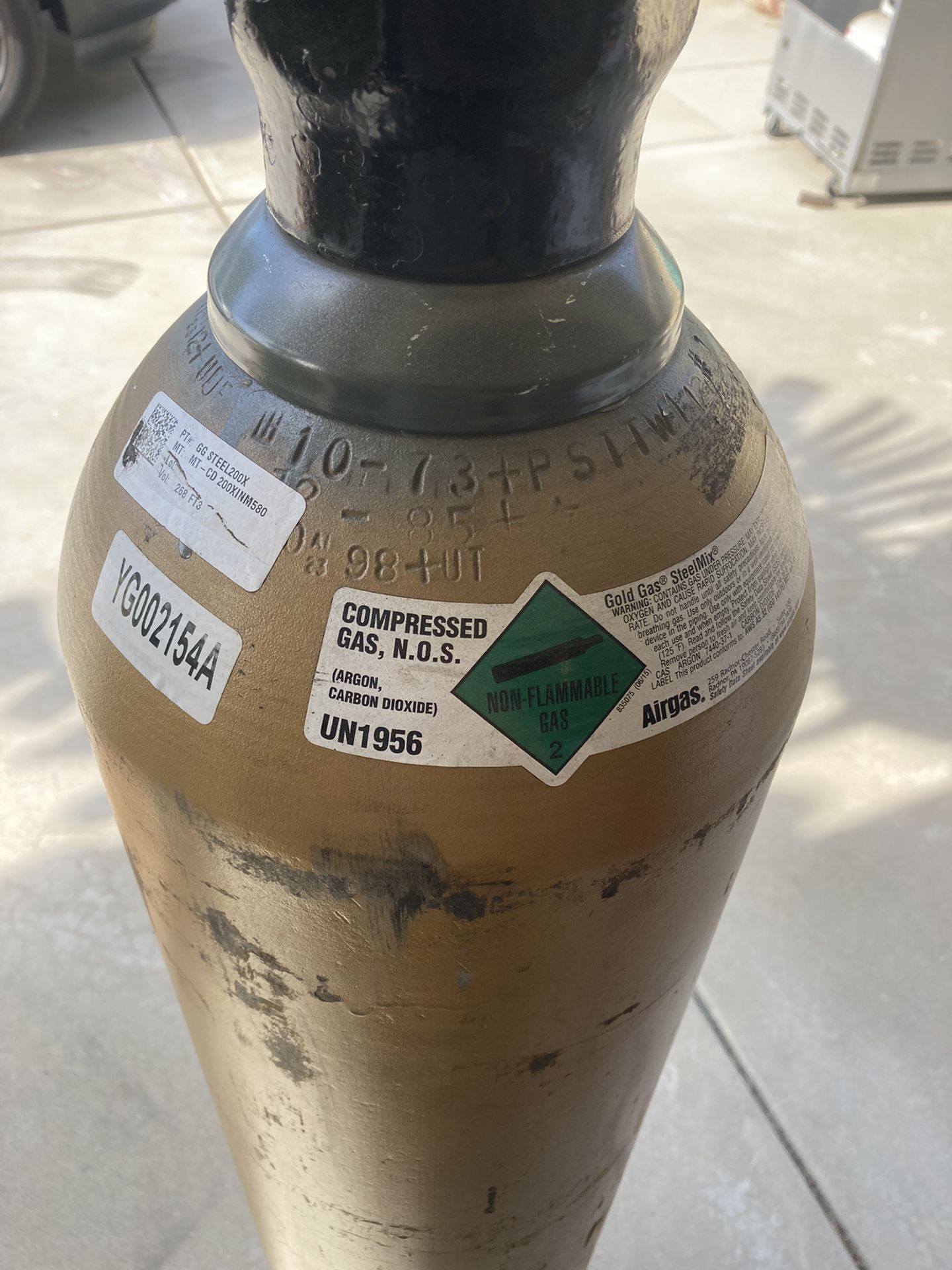 Customer owned welding tanks size 200 cubic foot. Full and in hydro date. $300 for full oxygen $200 for empty mixed gas cylinder