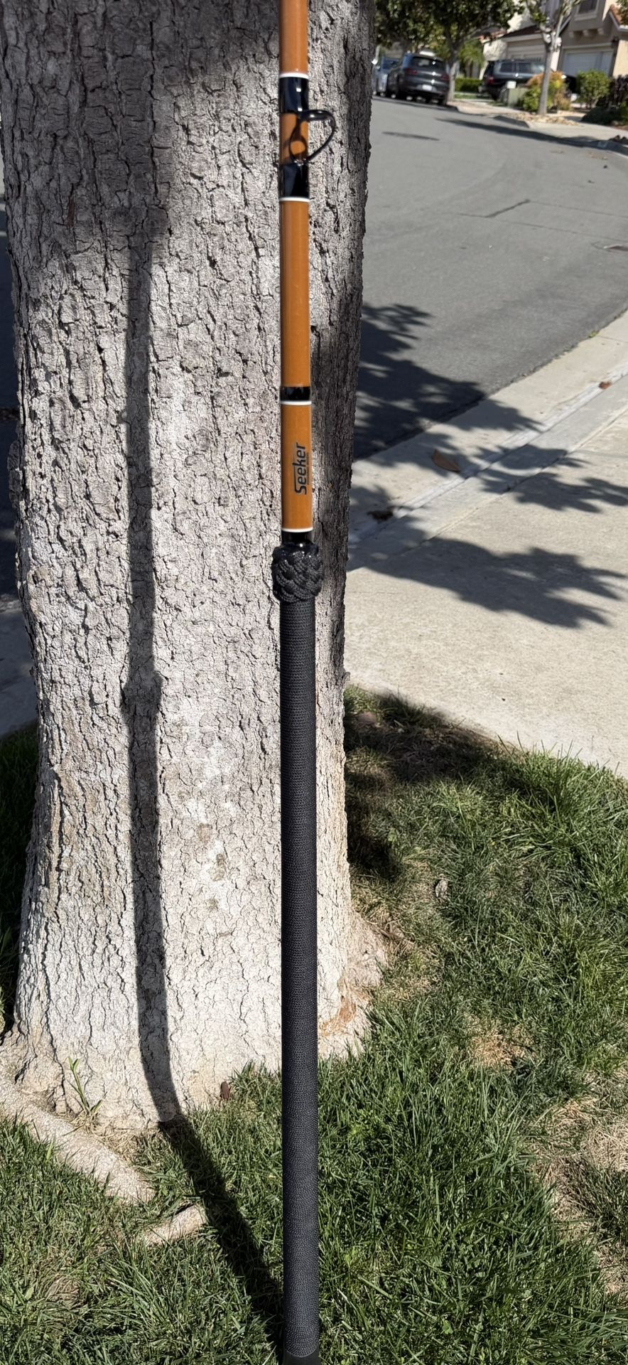 Custom built Seeker PH TnT 7’ 30-60# deckhand style handle treated cord wrap and turks head knot. Alps guides and tip-top. This rod is ready for the local yo-yo yellowtail bite going on right now. Asking $280 obo