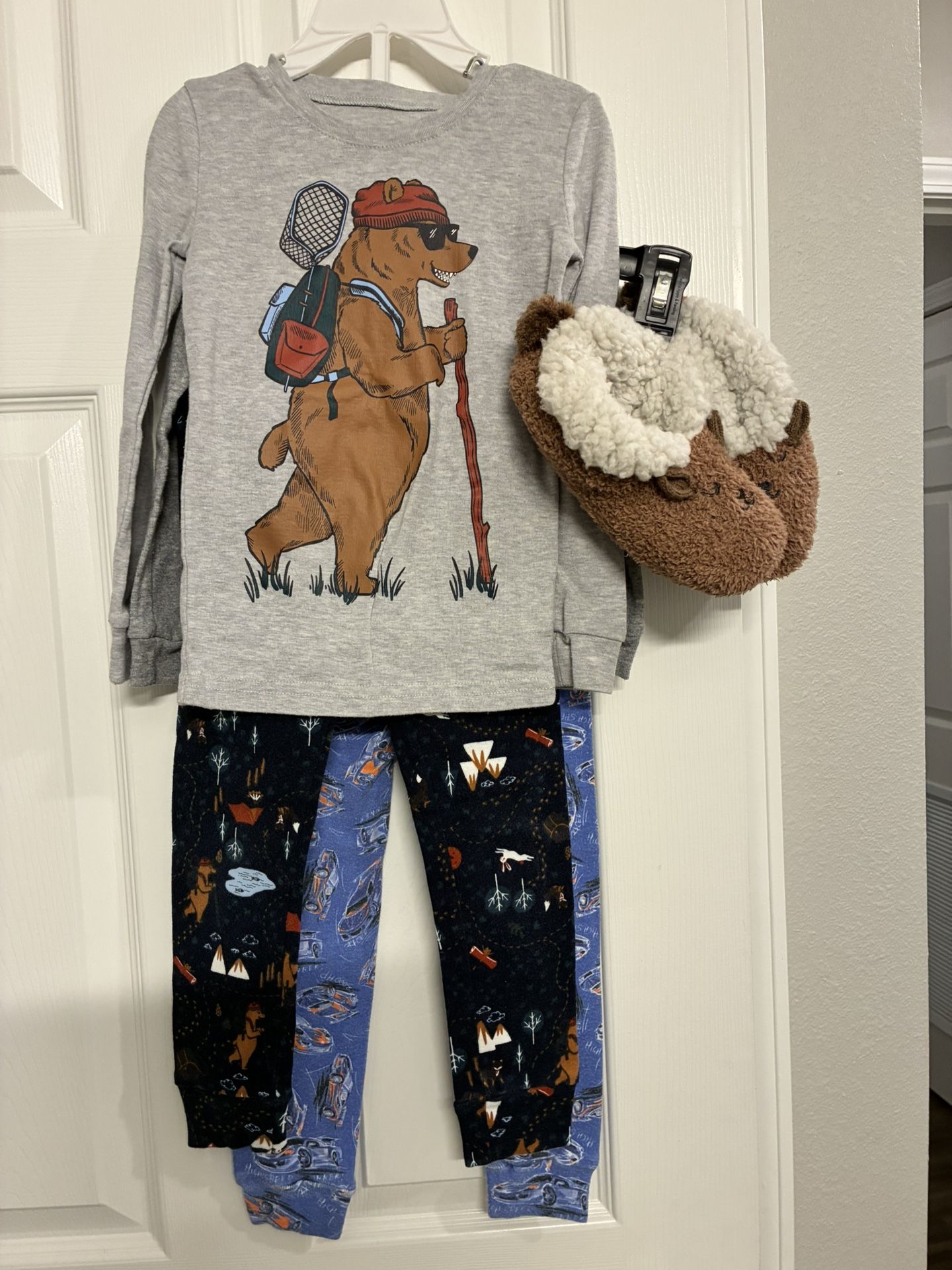 2 sets. long sleeve & long pants. In like new condition. Grandson prefers loose fitting pjs. & sensory with house shoes. These items in like-new condition