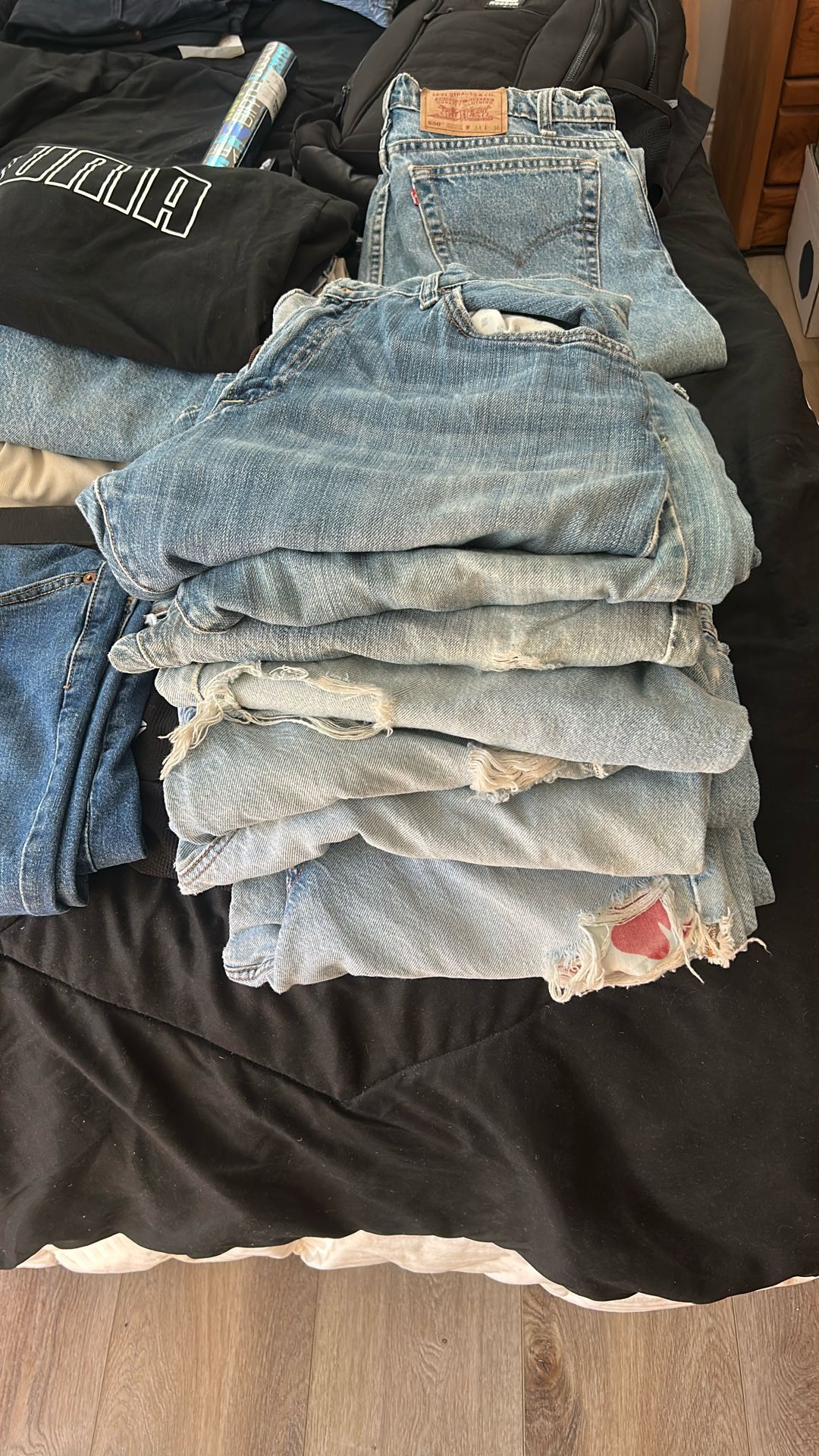 Six pairs of distressed lucky jeans. 34 x 34 $15 each.