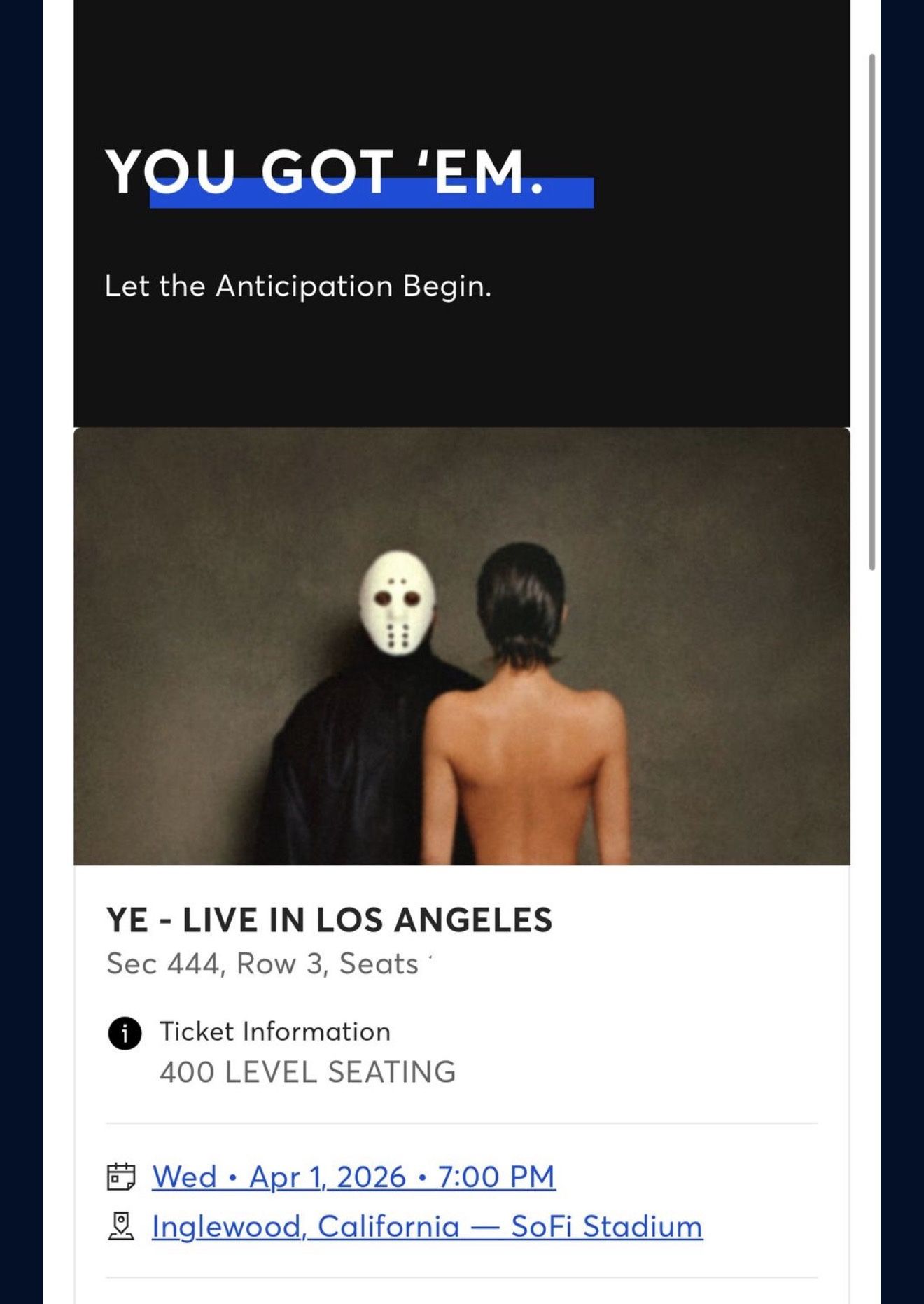 Ye - Live In Los Angeles Concert tickets 4/1/26
