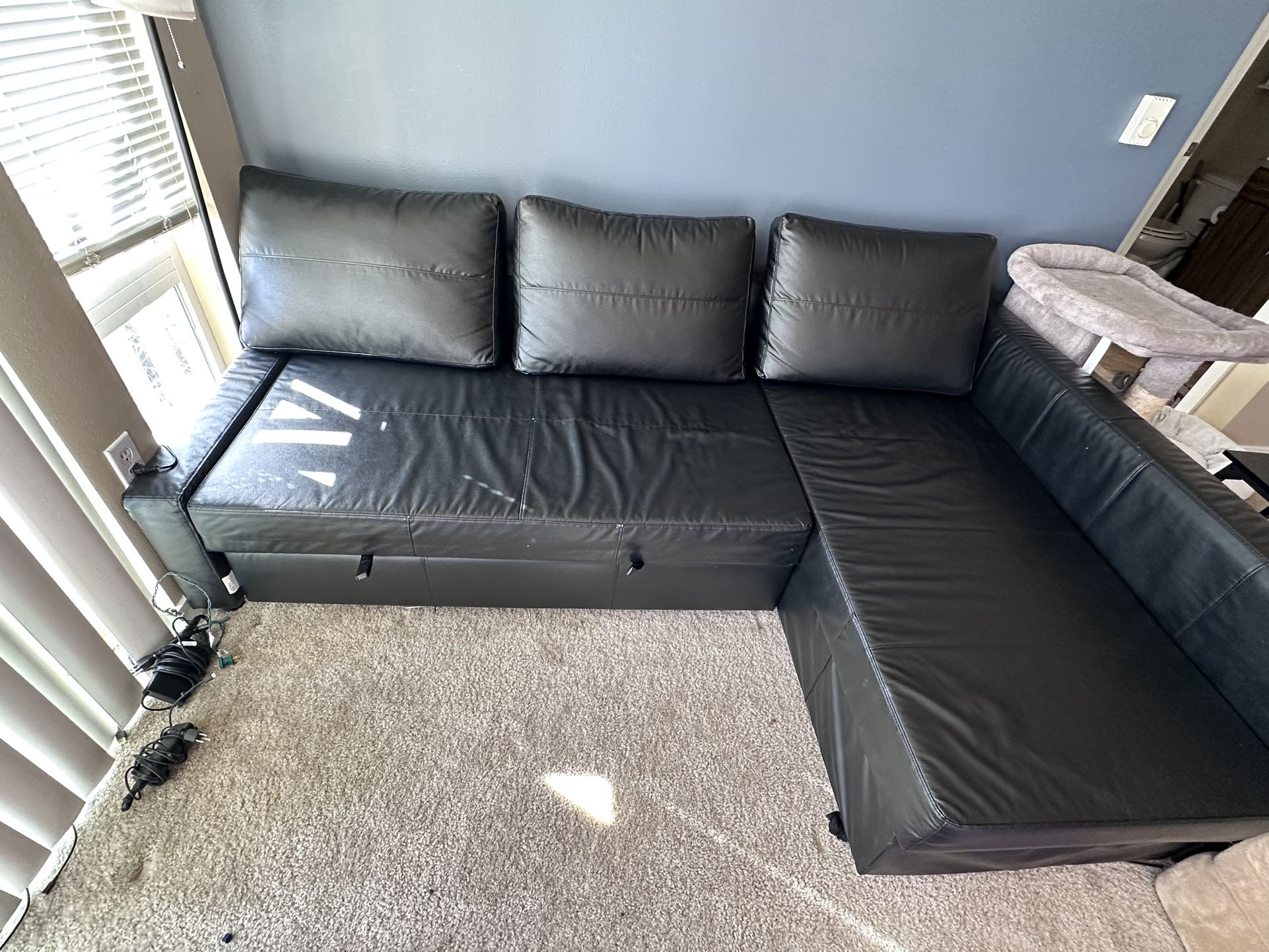 Black Leather Couch (Sleeper sectional)