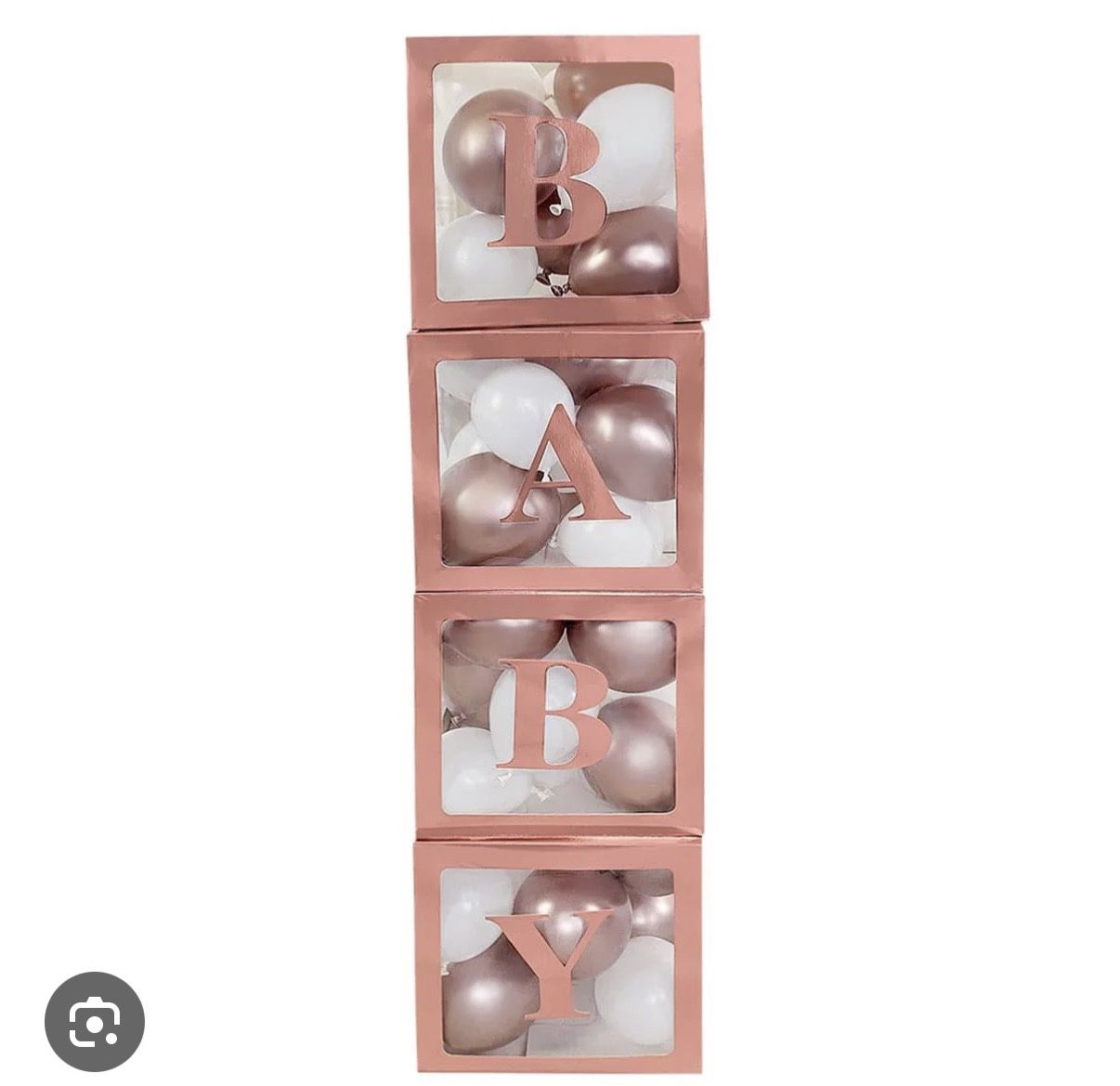 Rose Gold Clear Balloon Boxes with Baby Letters, 4 Count Rose gold paint slightly warped