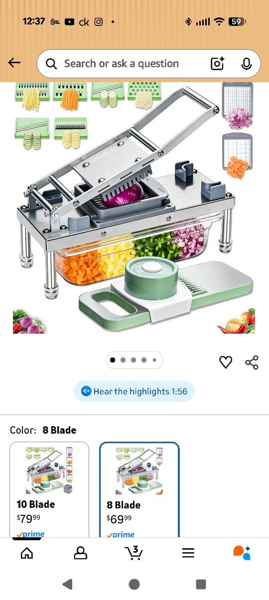 Stainless steel Vegetable Chopper, Veggie Chopper With 8 Blades, Onion Dicer with Container, Food Cutter & Grater Mandoline Slicer