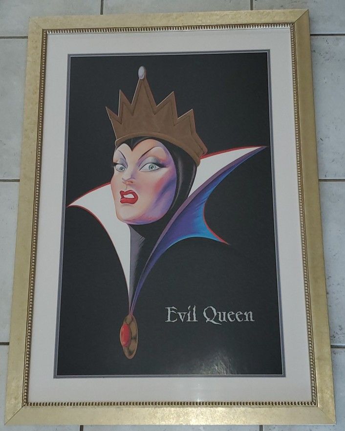 Vintage Disney Evil Queen Gold Framed Picture 29.5" X 41.5"