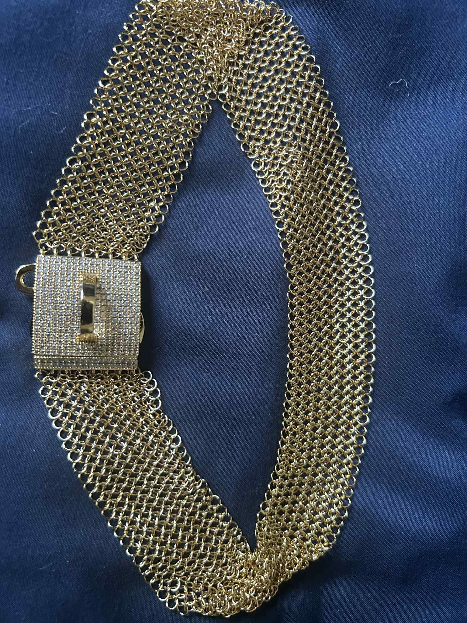 Dog Chain Collar Necklace 18K White Gold Plated Stainless Steel Chain Collarwith Bling Bling CZ Design Secure Buckle, 30MM Strong Chew Proof Anti-Rust for Medium Large Dogs(Gold, 16")