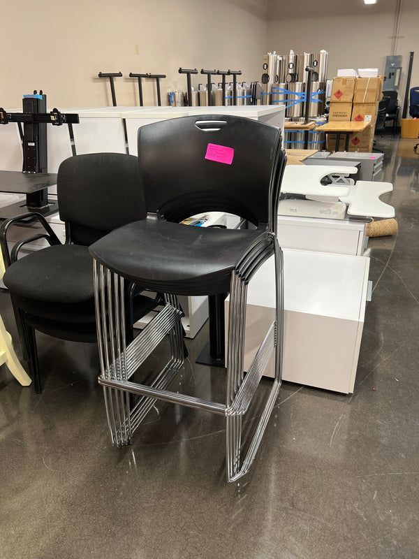 Save big at gone.com 5 available!! **Pre-Owned SitOnIt OnCall Multipurpose Chair – Black** A versatile and functional seating option, the SitOnIt OnCall chair features a sleek black design with a built-in handle for easy maneuverability. Its stackable design allows for space-saving storage, stacking up to 8 high—ideal for offices, conference rooms, or event spaces. **Dimensions:** - Overall Height: 43.5" - Width: 20" - Depth: 17.5" - Seat Height: 30" Let us know if you’d like to take a closer look or arrange pickup! 😊