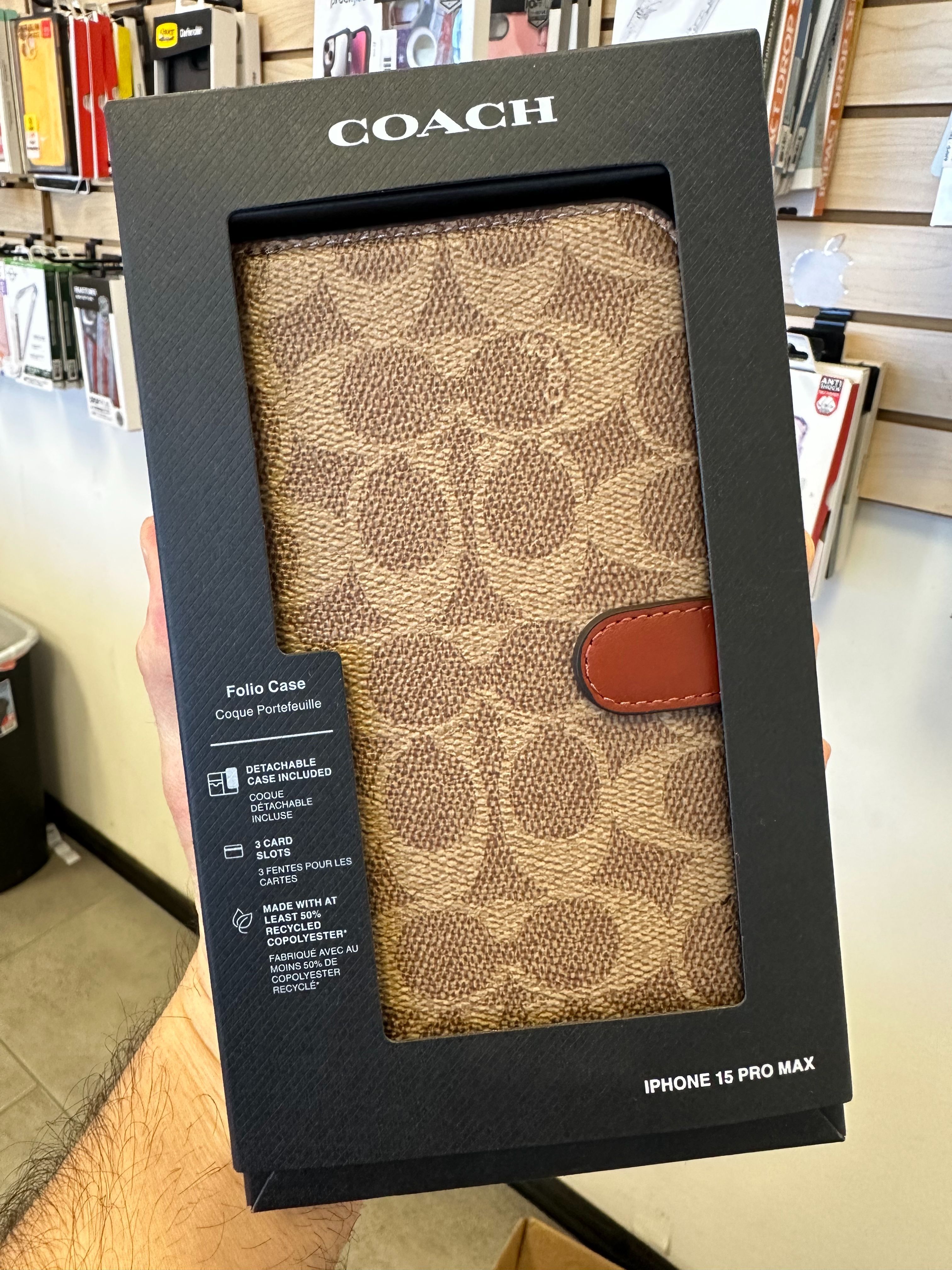 Genuine Coach Case, leather, original product, fits iphone 15 Pro Max Reg. Price $99.99. Last Piece