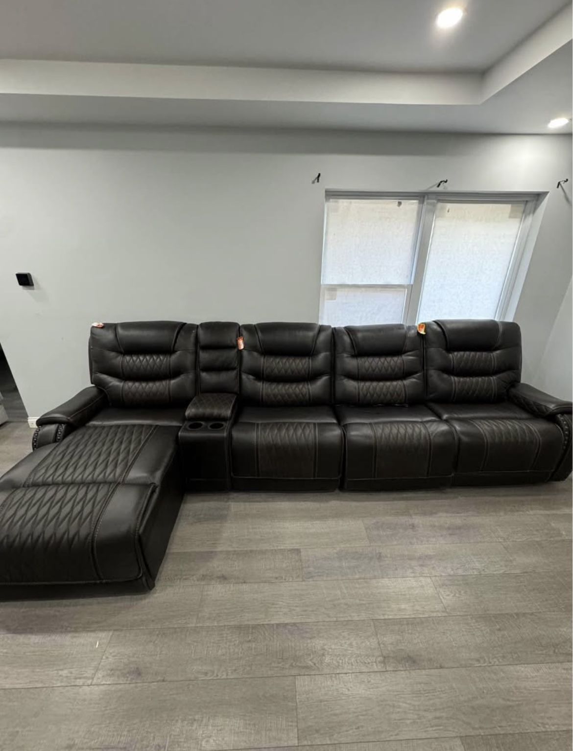 Leather power reclining sectional with adjustable headrests & USB ports Message for details Delivery available