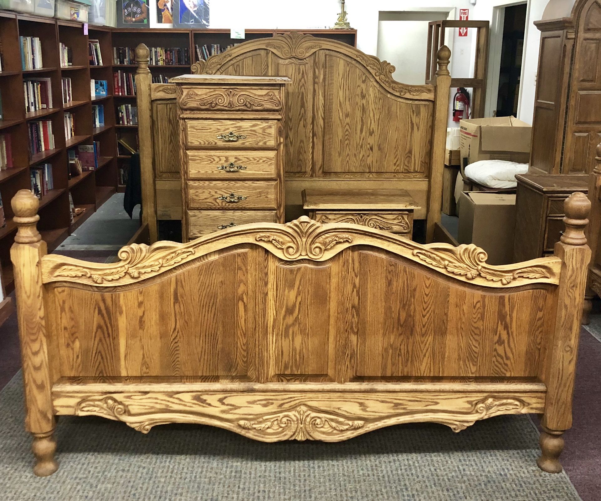 Excellent condition! Solid oak wood. Originally over $10,000. Asking $1,000 for all pieces, or best cash offer. Includes both a queen and king headboard and footboard 1 tall dresser 1 long dresser 1 nightstand