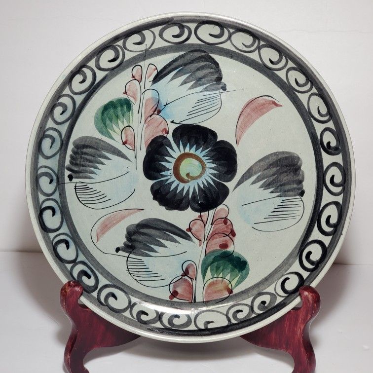 ******Pick up in SE Portland close to 82nd and Powell.****** Tonal folk art pottery plate. Floral pattern. Made in Mexico. Handmade and hand painted. 10.75" across. Flaws on underside of plate.