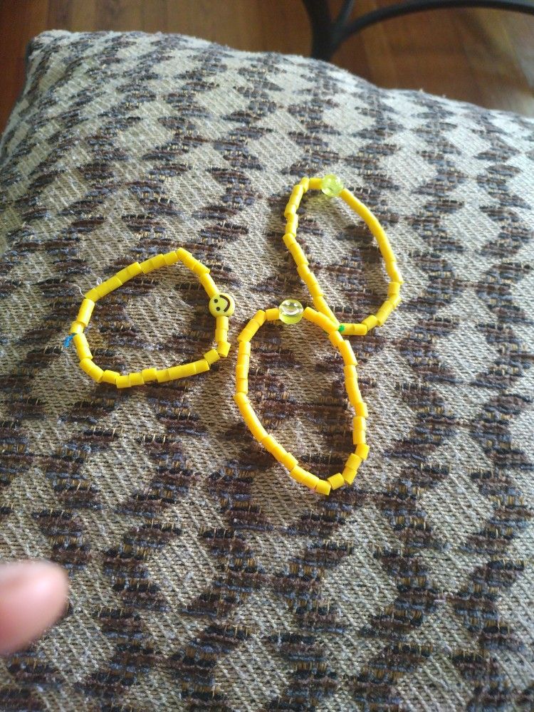 This is a set of 3 yellow smiley face bracelet