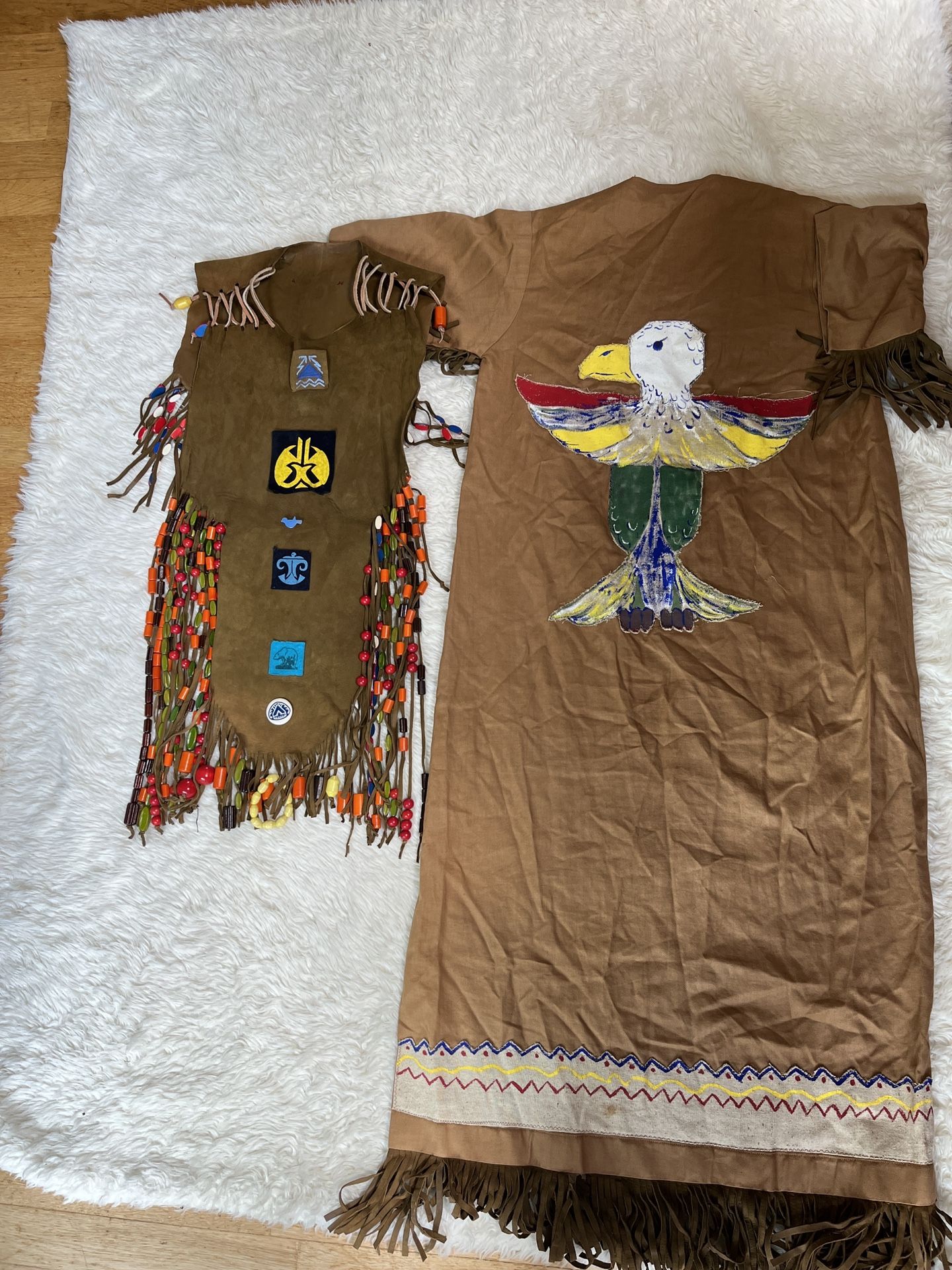 Vintage Camp Fire Girls vest dress 40s? 50s? beaded pins patches eagle RARE.