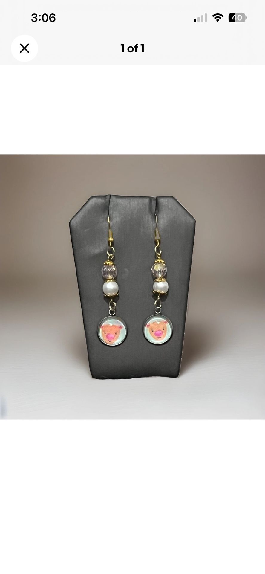18k Gold Plates Handmade Pig Charm Beaded Earrings Unique Farm Inspired Cabochon