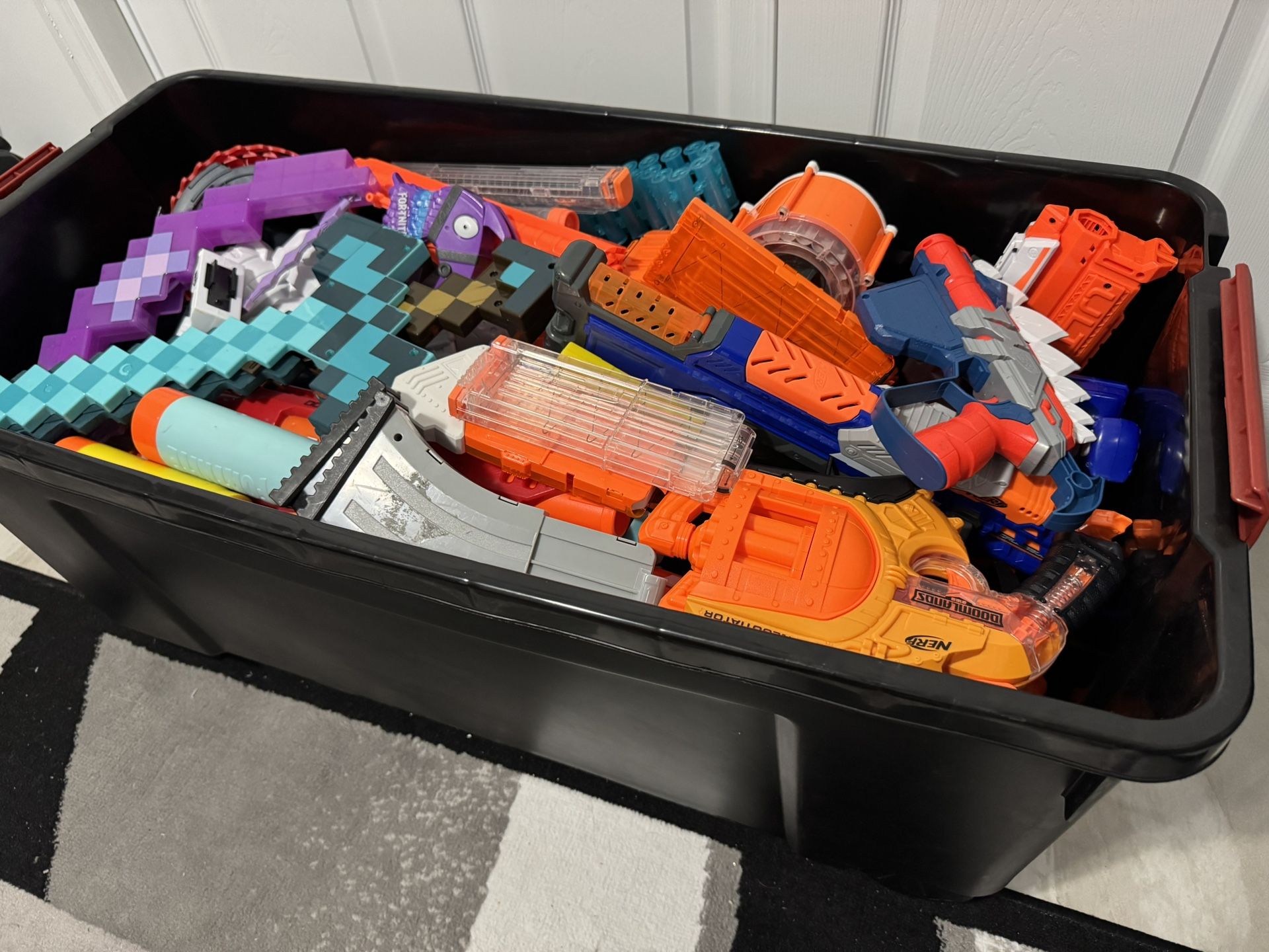 Lot of Nerf Blasters Minecraft Fortnite Collection w/ rolling storage included Over 20 individual blasters/pistols plus misc magazines..far too many to list. Rolling storage can be removed from sale and the lot can be purchased for $80. That’s an average cost of $4 per blaster, plus all of the magazines, etc. Photos of specific items upon request. Full lot for $100 (very firm). If rolling storage isn’t needed, $20 can be deducted from sale price. Not interested in any offers below that amount.