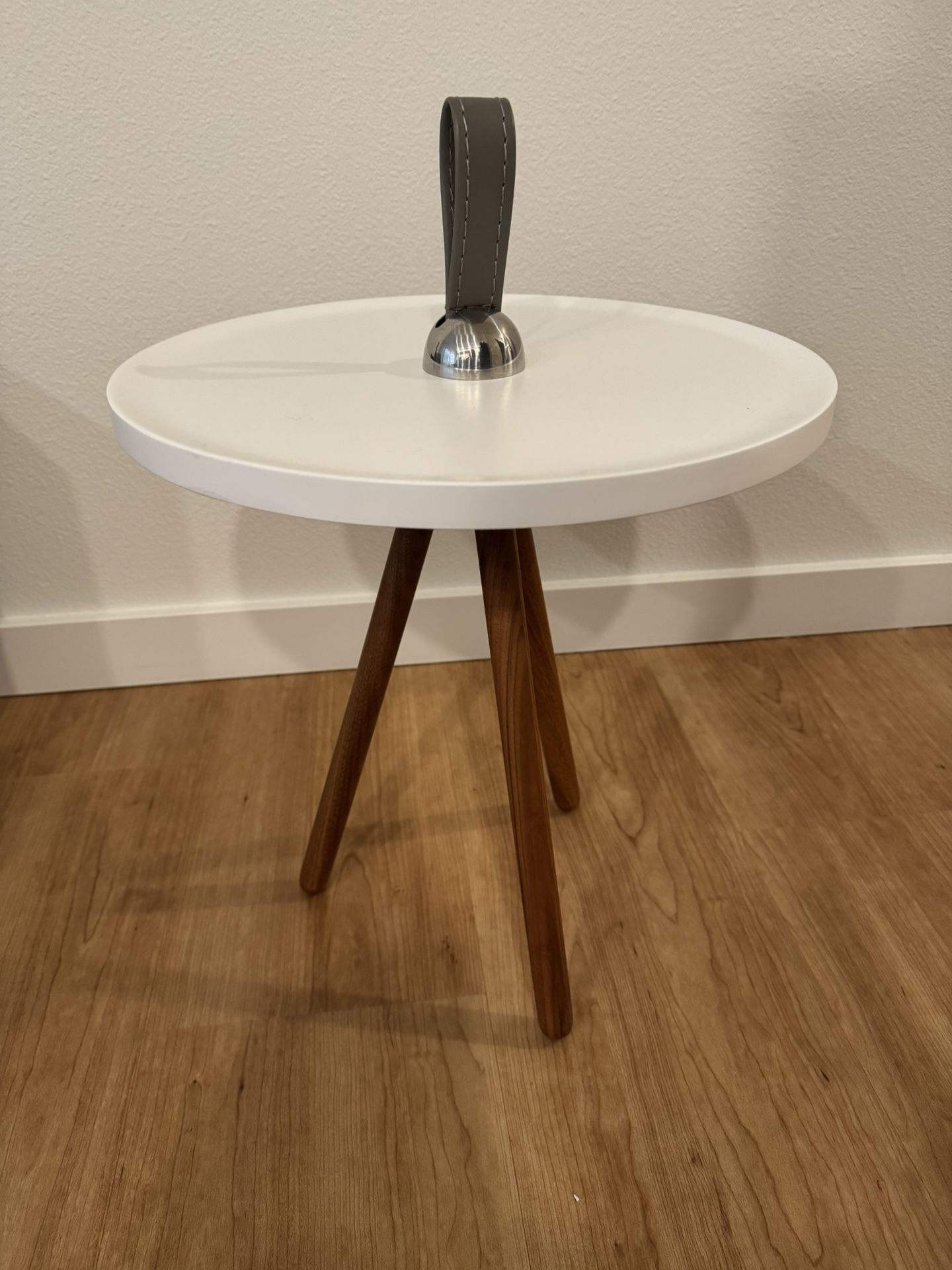 Coffee/Side table from Modani Furniture. Has a small chip (see photo) but otherwise in good condition.