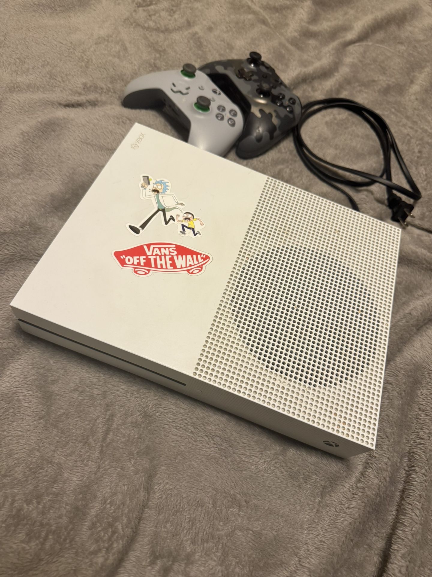 Xbox One S 250gb. With power cord, 2 controllers, and 2 disk games.