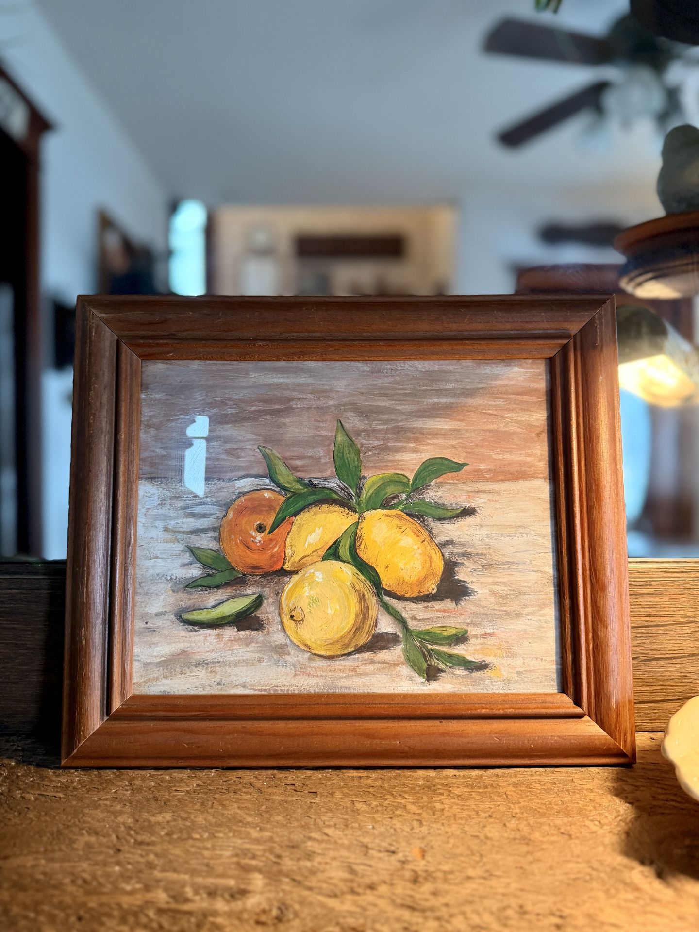 Fruit Painting Original Artwork In Frame 10.5 x 12.5 Painted by Sammy Davis in a vintage wood frame Water color lemons and orange painting