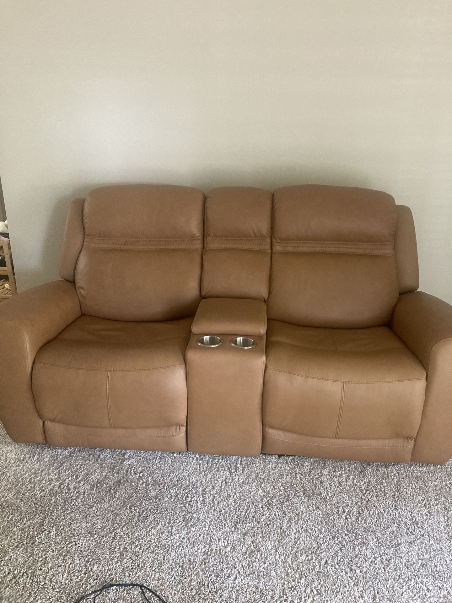 Purchased last year at Value City Furniture - American Signature furniture. I’m moving to another state soon and this will be available only for a week or two. https://offerup.com/redirect/?o=aHR0cHM6Ly93d3cudmFsdWVjaXR5ZnVybml0dXJlLmNvbS9wcm9kdWN0L2dyb3VwL2xpdmluZy1yb29tL3NlYXRpbmcvbG92ZXNlYXRzL2tlbnlvbi1tYW51YWwtcmVjbGluaW5nLWxvdmVzZWF0LXdpdGgtY29uc29sZS10YW4vMjg4MzQ1OC8yODExNzAy
