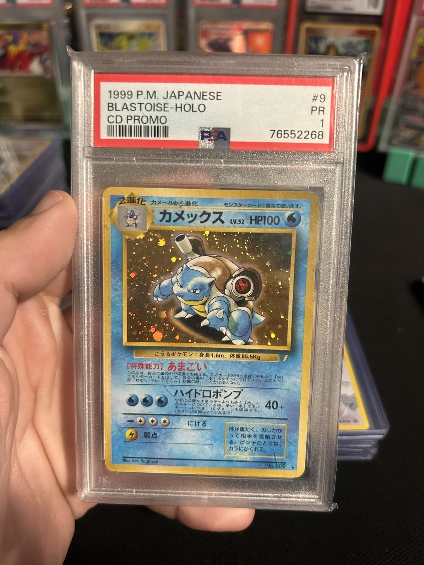 Japanese exclusive promo CD Blastoise graded in a psa 1 The card looks phenomenal for a 1 very unique looking and has an amazing swirl so I’m taxing a bit. Any questions message me and reference photos for condition. Make an offer if you would like!!