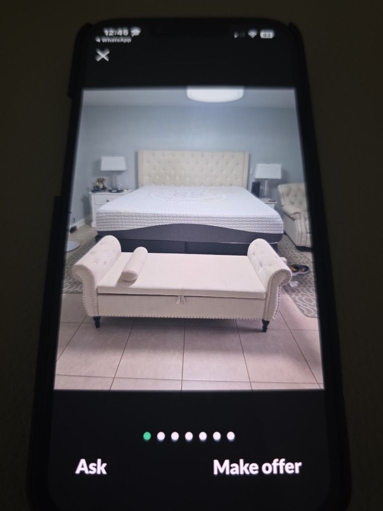 King SIZE BED WITH OTTOMAN RECLINER AND 2 LAMPS