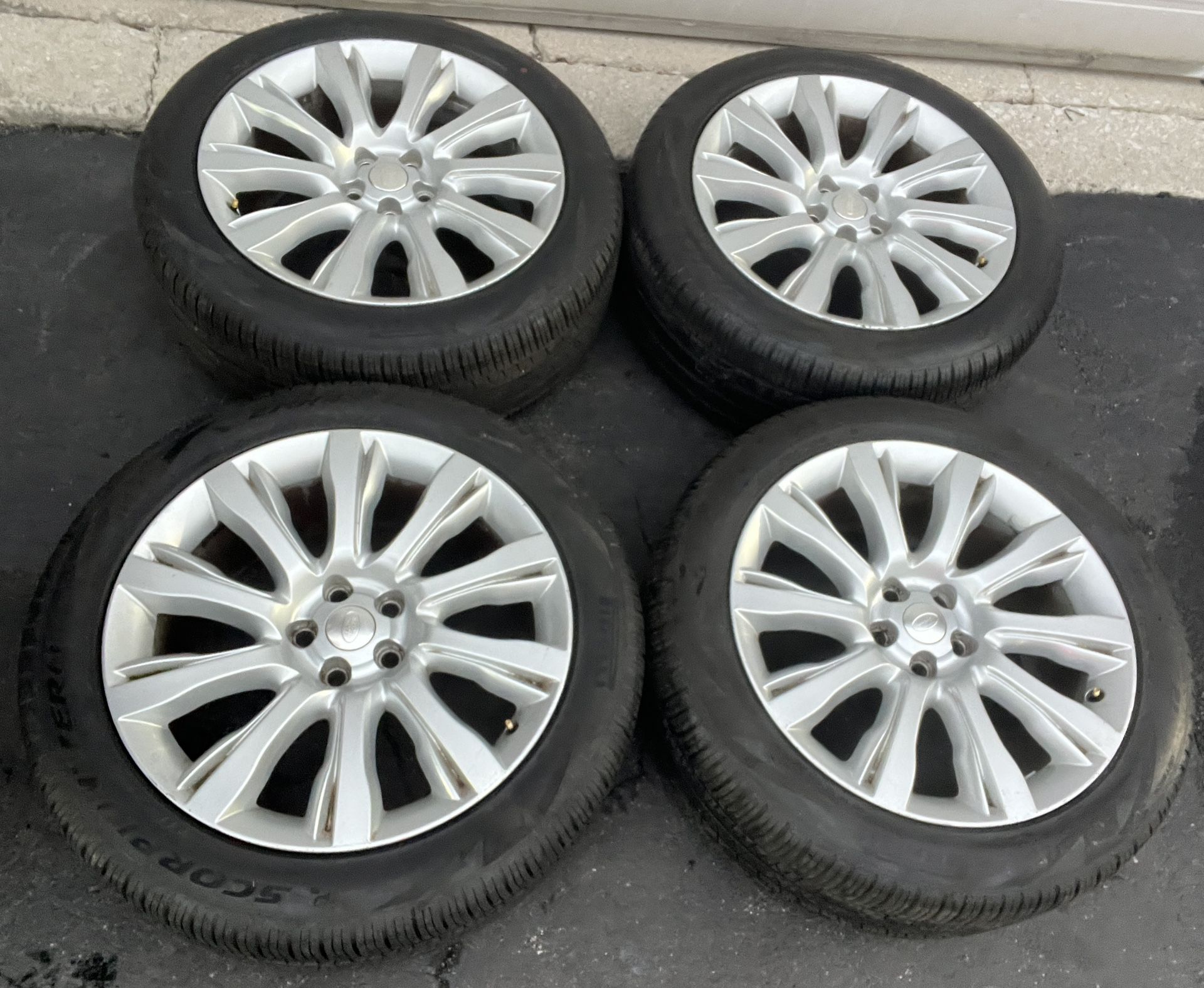 Selling Nice Set of: 21” Land Rover Range Rover Sport OEM Factory Wheels Rims Tires 21 inch Tire Size/ Brand: 275/45/21 275/45r21 Pirelli All Season Tires. Tires have approx. 95% tread. Like New. Joe