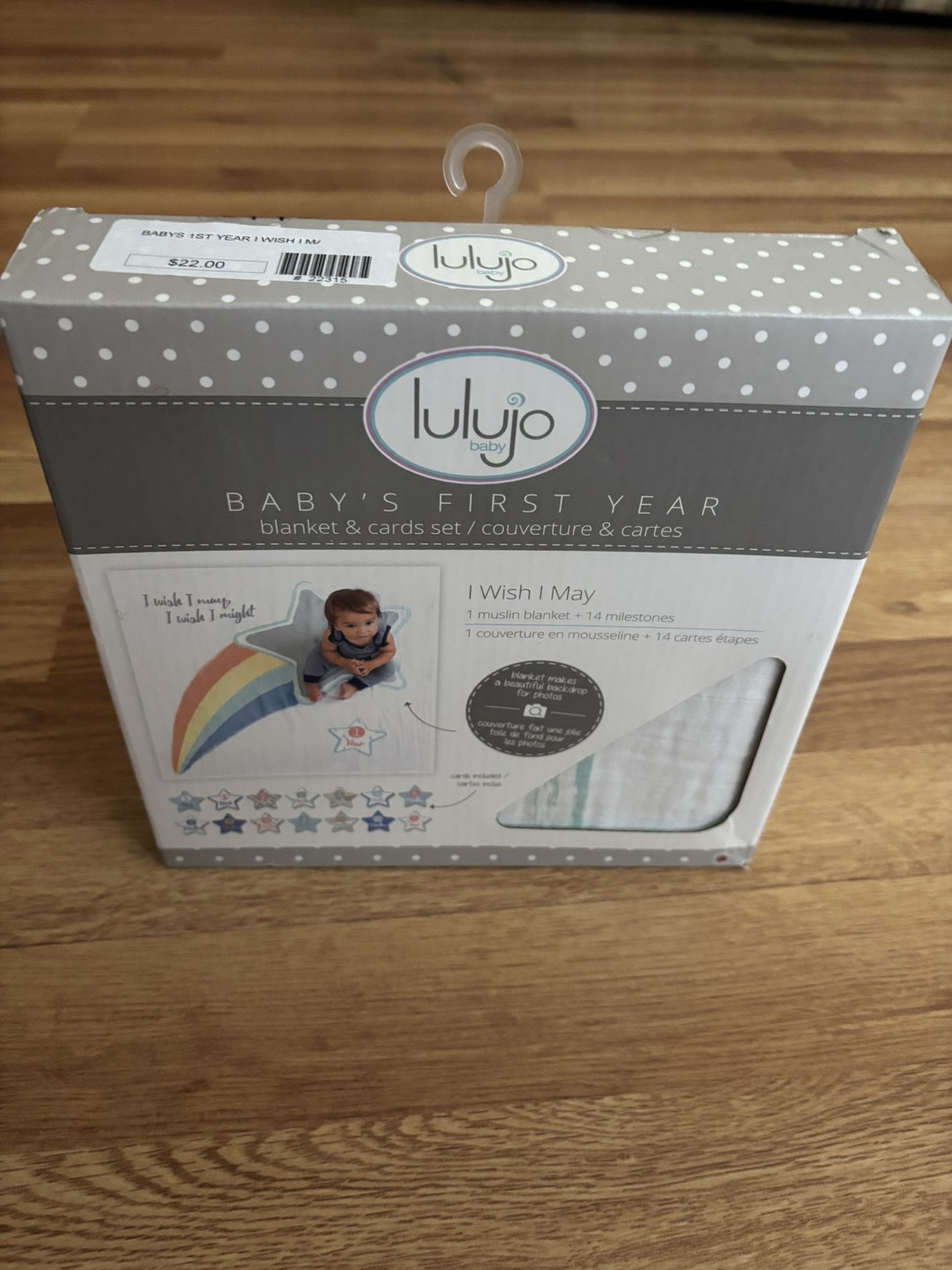 Baby’s first year blanket and card set. 1 muslin blanket 14 milestones Located in daytona beach $10 Shipping available with additional cost of packaging & delivery.