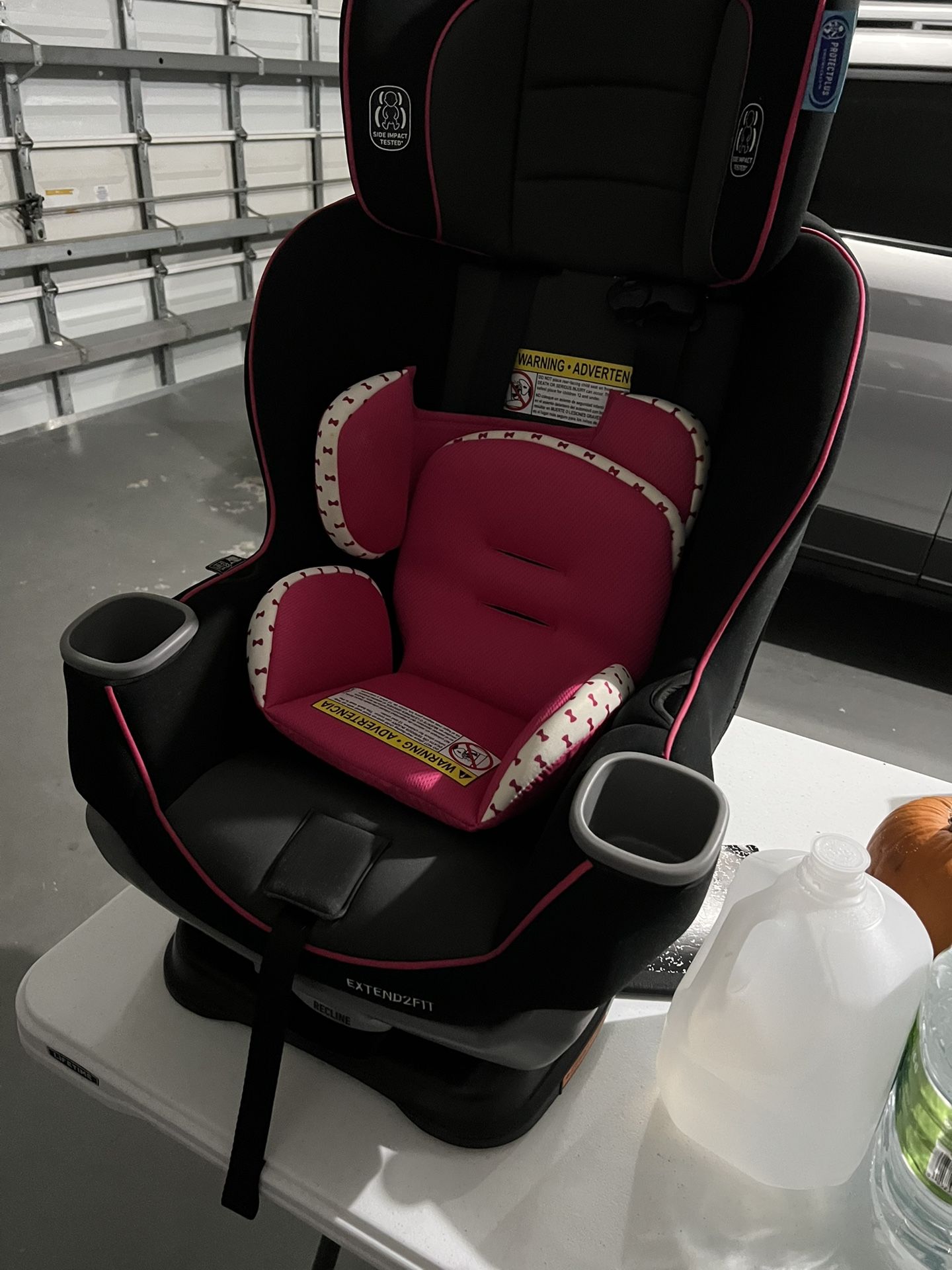 Safely ride rear-facing longer! The Graco Extend2Fit Convertible Car Seat grows with your child from rear-facing harness (4-50 lb) to forward-facing harness (26.5-65 lb). It features a 4-position extension panel that provides up to 5” of extra rear-facing legroom, allowing your child to safely ride rear-facing longer. Children are safer riding rear-facing and should ride rear-facing as long as possible, until they reach the maximum rear-facing height or weight rating for their car seat. With Extend2Fit, the adjustable extension panel and 50 lb rear-facing weight limit allow the seat to grow with your child in rear-facing mode, providing extended rear-facing use. The seat features the No-Rethread Simply Safe Adjust Harness System, which allows you to adjust the height of the headrest and harness in one motion, and InRight LATCH for a one-second LATCH attachment. Harnessing is made easier with fuss-free harness storage pockets that conveniently hold the harness out of the way while you get baby in and out of the car seat. This car seat is Graco ProtectPlus Engineered to help protect in frontal, side, rear, and rollover crashes. Graco Extend2Fit Convertible Car Seat, Kenzie, Pink Convertible car seat grows with your child from rear-facing harness (4-50 lb) to forward-facing harness (26.5-65 lb) Extend2Fit 4-position adjustable extension panel provides up to 5" additional legroom, allowing your child to safely ride rear-facing longer Up to 50 lb rear-facing, allowing your child to safely ride rear-facing longer Graco ProtectPlus Engineered: a combination of the most rigorous crash tests that helps to protect your little one in frontal, side, rear & rollover crashes No-Rethread Simply Safe Adjust Harness System allows the headrest and harness to adjust together in one motion Choose the perfect headrest height from 10 positions to get the safest fit for your child as they grow 6-position recline keeps your child comfy and helps for a better installation Push-button InRight LATCH provides an easy, one-second attachment with an audible click to help ensure secure installation Fuss-free harness storage pockets conveniently hold the harness out of the way for easy in and out Steel-reinforced frame provides strength and durability for 10 years of use Easy-to-read level indicator helps eliminate installation guesswork 2 easy-to-clean cup holders keep your child's drinks and snacks close at hand Removable, plush head and body inserts help to keep your infant feeling cradled and comfortable Seat pad is comfortable and machine washable Meets or exceeds the child restraint criteria for a frontal crash test under the US FMVSS 213
