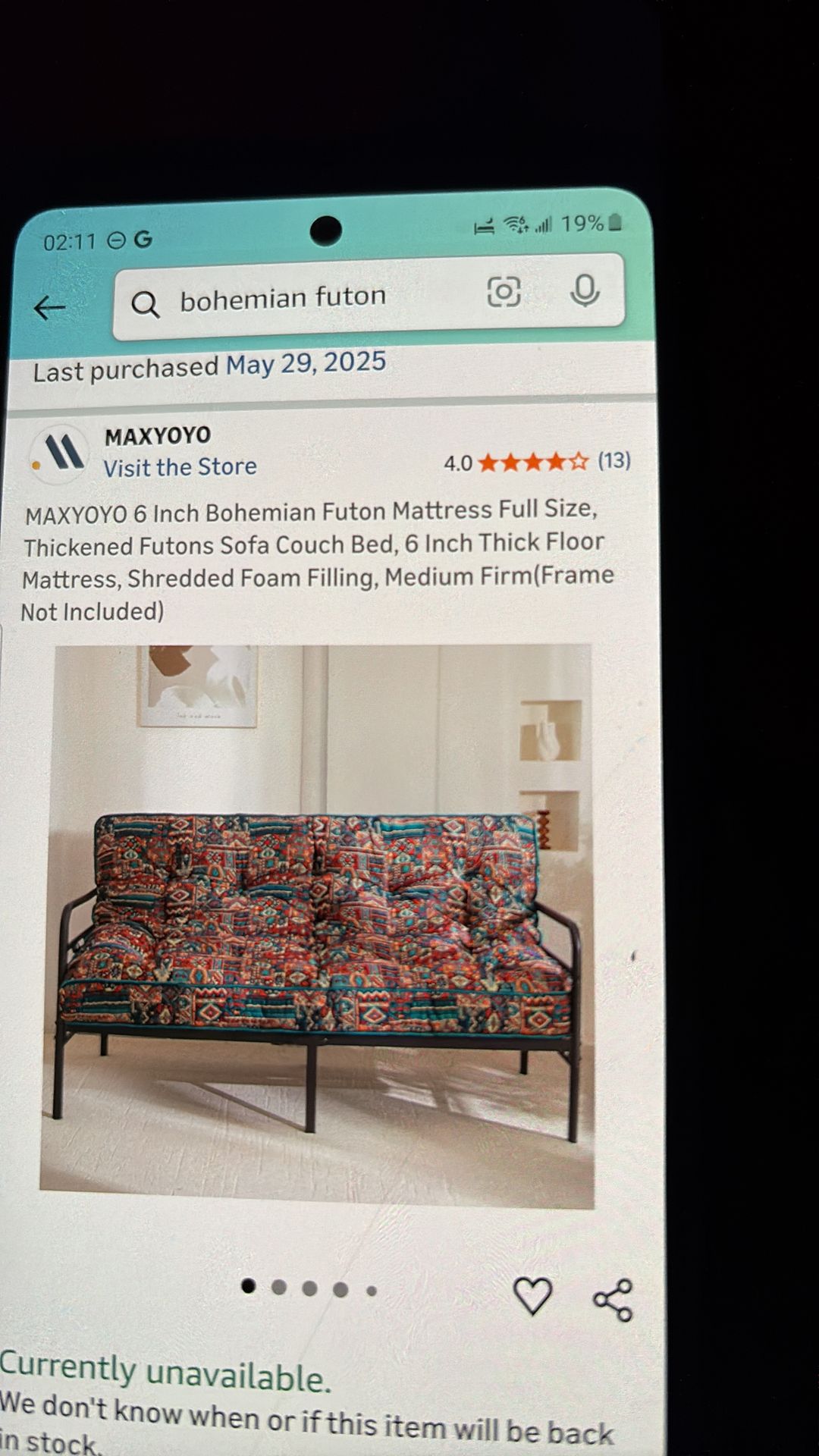 Bohemian design futon mattress used less than a year