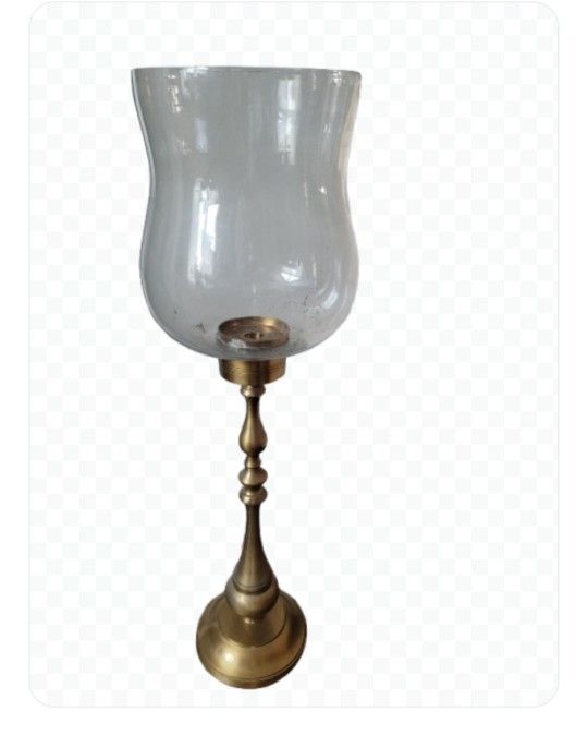 beautiful vintage and brass floor candle holder. Made in the U.S.A circa1980. Brass metal, not plated. blown glass top. negotiable on price widest point on glass top part .is 16". base measures 10" mouth of glass top measures 7". negotiable on price