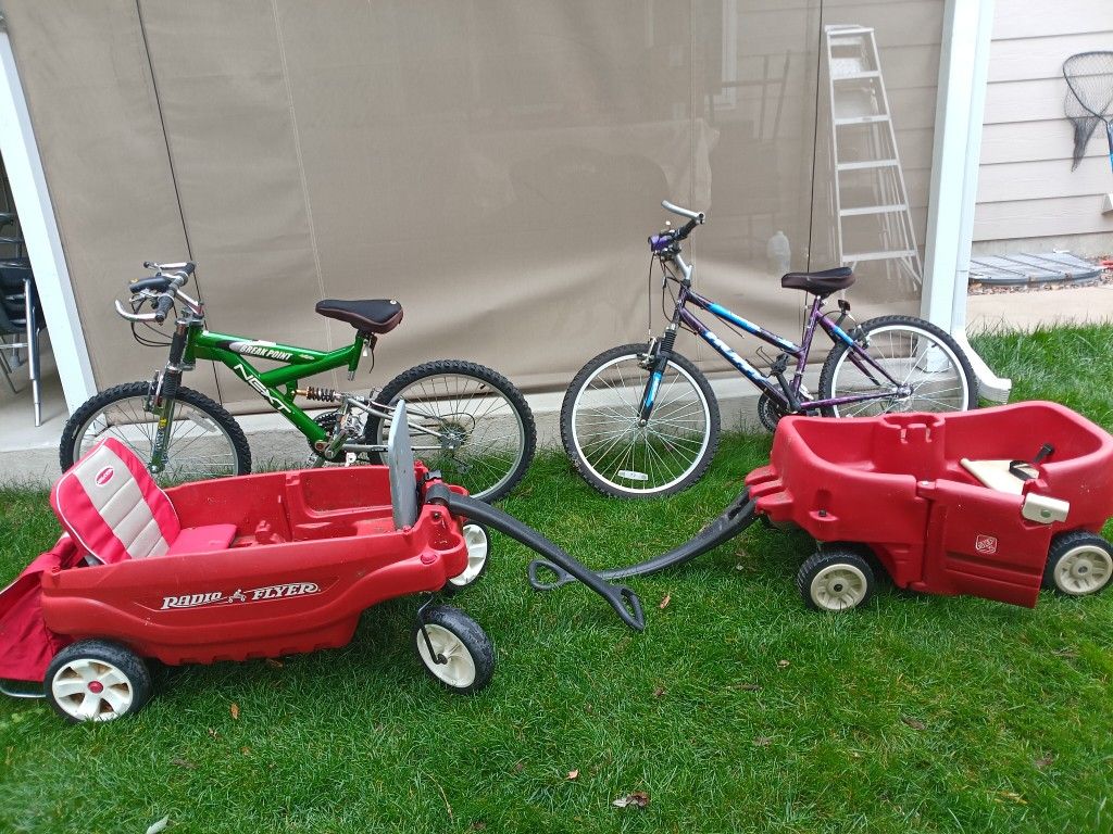 $100 each on the bikes and $50 each on the wagons. Radio Flyer wagon is sold