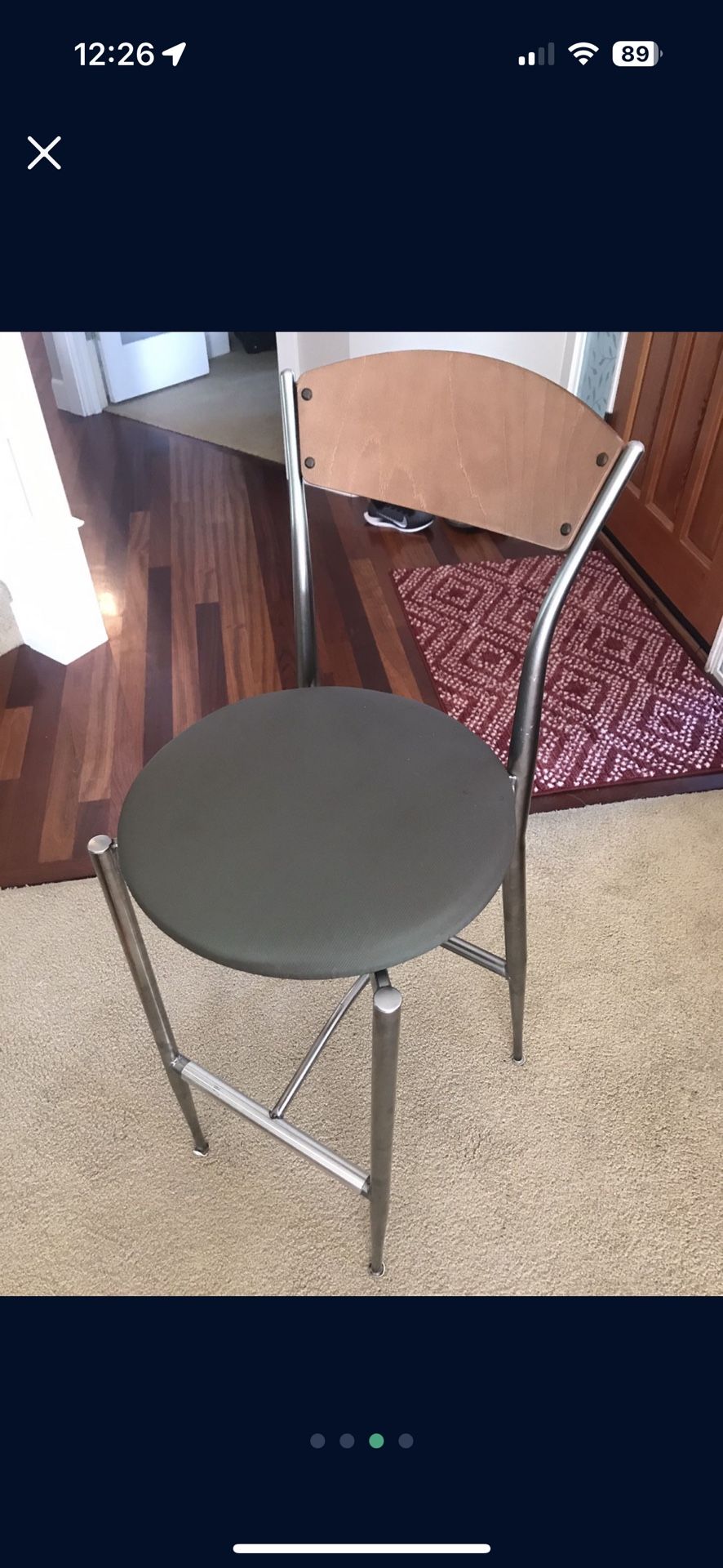 Commercial MTS barstools. Great shape just needs good cleaning. Stainless steel frame. Approx. $350 each Will sell for both for $40 30” seat height. Made for a 42” high table or eating bar