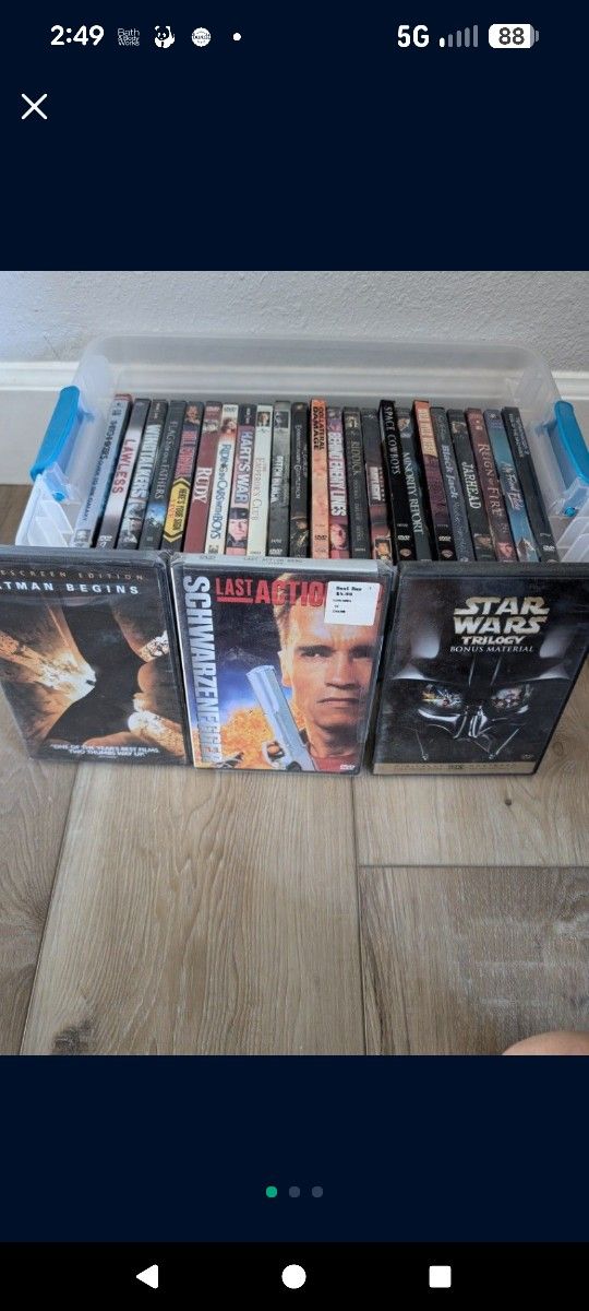 Twenty six (26) dvd's that I am selling together. I will sell all of them for $25..That is less than $1 a piece . A couple are brand new and have never been opened. Tote not included. Live in Centennial Hills off Ann Road and El Capitan. Cash only