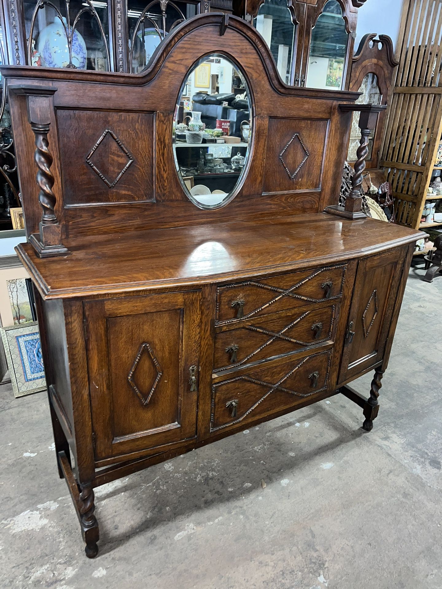 Antique Buffet Server With Mirror Back