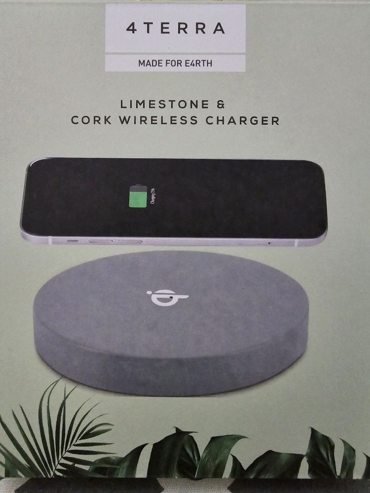 Limestone & Cork Wireless Charger by 4 Terra is a stylish and sustainable charging pad made from cork material.