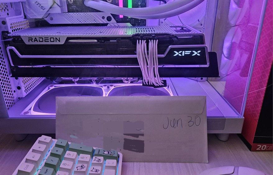 Great condition, with no issues whatsoever. Better than an RTX 4070Ti Super, 3090Ti and 5070. Pick up only or we can meet at a police station if needed. Still has about 1 year manufacturer's warranty. Box included with anti-sag bracket - 20GB GDDR6 VRAM Radeon 7900XT XFX Speedster Series Merc310