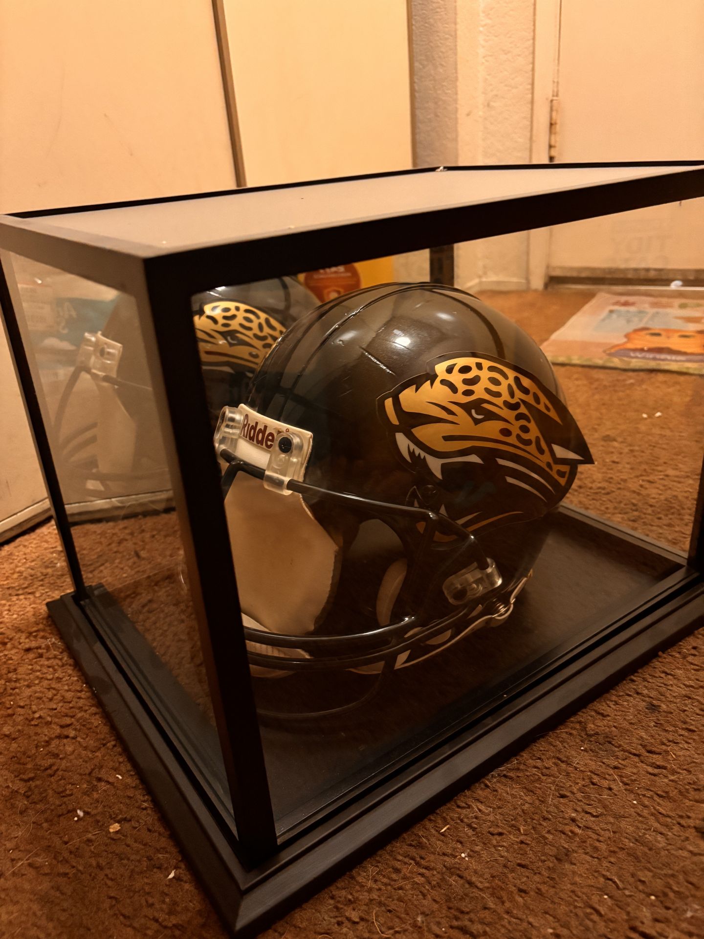 Authentic Riddell NFL Jaguars football helmet. Been sitting in a case since I got it but don't have room for it. Black helmet with gold jaguar logo and black facemask. Give me an offer Mabey I’ll go lower