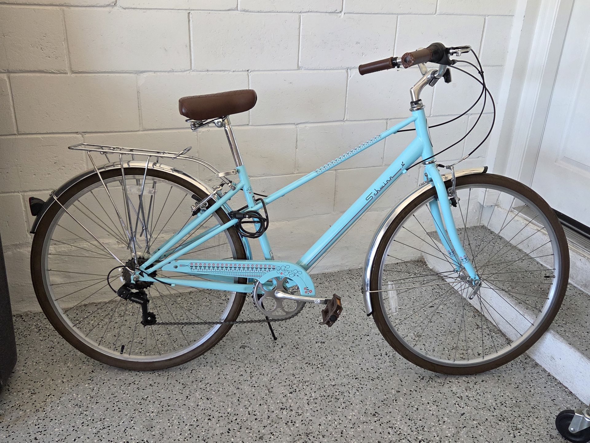 In like new condition, Schwinn Admiral Women's Hybrid Bicycle. Barely used. Garage kept. Nothing wrong with it. Brakes and gears are smooth. 7 speed Shimano gears