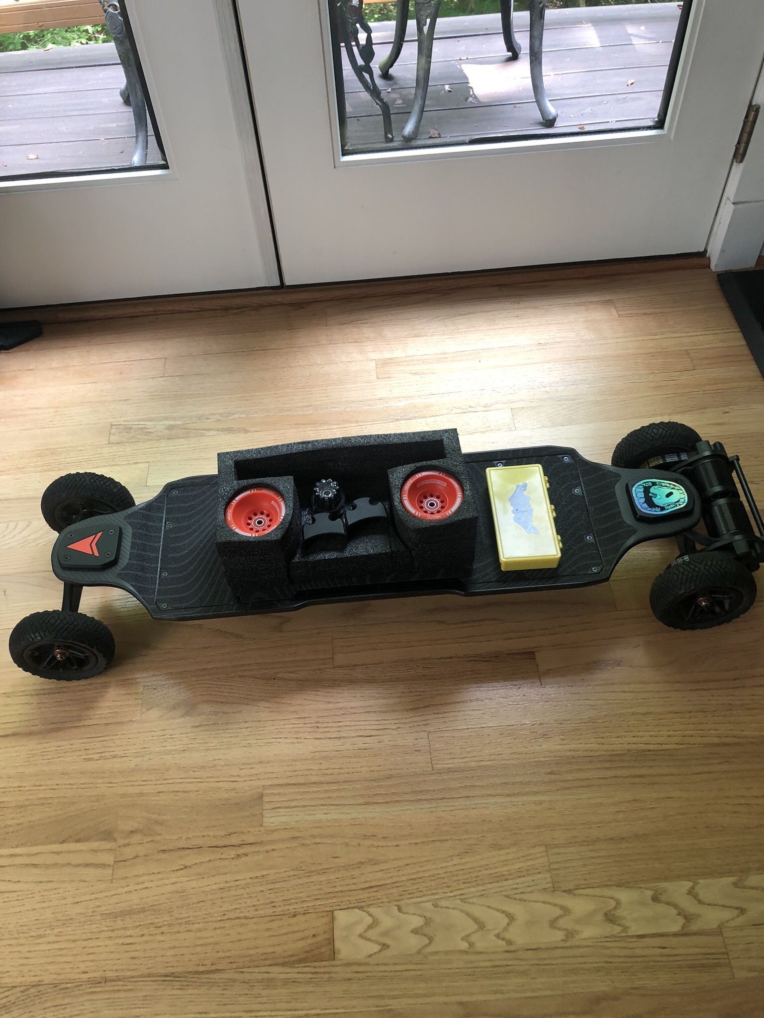 Used - Like new. Not a scratch on it and runs perfect. I’m too old to take a spill so she’s gotta go. This board is $1800 new and includes a pack of $80 riptide bushings. https://offerup.co/faYXKzQFnY?$deeplink_path=/redirect/ Comes with riptide bushings for maximum control and a set of street wheels that have never been used. The all terrain wheels have very little wear on them. Ultra Powerful — Boasting a range of 44 miles with real world test conditions (test rider weighs 75kg travelling at 40km/h on 90mm street wheels). The Hurricane all terrain electric skateboard also has the highest top speed of any production boards on the market, at a whopping 35mph, all while maintaining more torque than you’ll ever need. Safety Performance — The Meepo Hurricane long board is built like a tank using T700 Carbon Fiber. This deck, alongside the battery box, keeps the battery pack well protected against any puncture or bends. Quality Adjustable Speed And Brakes — 4 speeds and 4 brakes are designed from weak to strong to meet the needs of different riders. Wireless remote control allows you to change speed mode freely. Professional Skateboard — Convenient and innovative way of commuting- With 3500W*2 motors at your disposal, the 165kv BLDC motors alongside 15:55 gear ratio and 155mm rubber wheel will give you incredible launch and hill climbing capabilities.