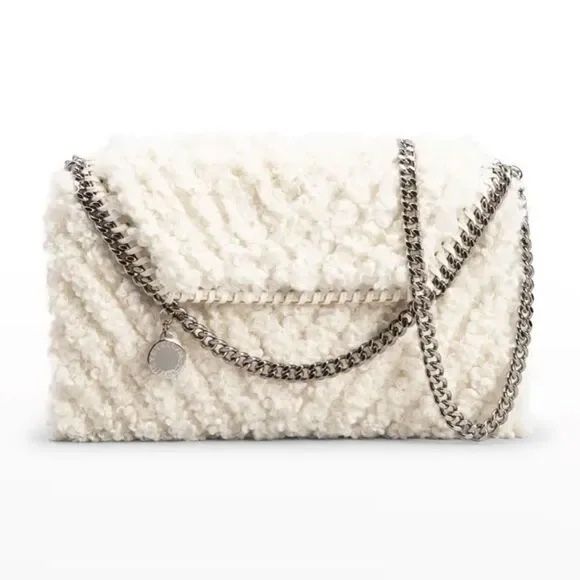Stella McCartney crossbody bag in textured chevron-quilted fabric NEW, never worn, no flaw - Faux fur, vegan Chain top handle with logo charm Chain shoulder strap Fold-over flap with magnetic closure Interior, one slip pocket Approx. 9"W x 6"H x 2"D Made in Italy Dustbag Pick up, Ask for Shipping