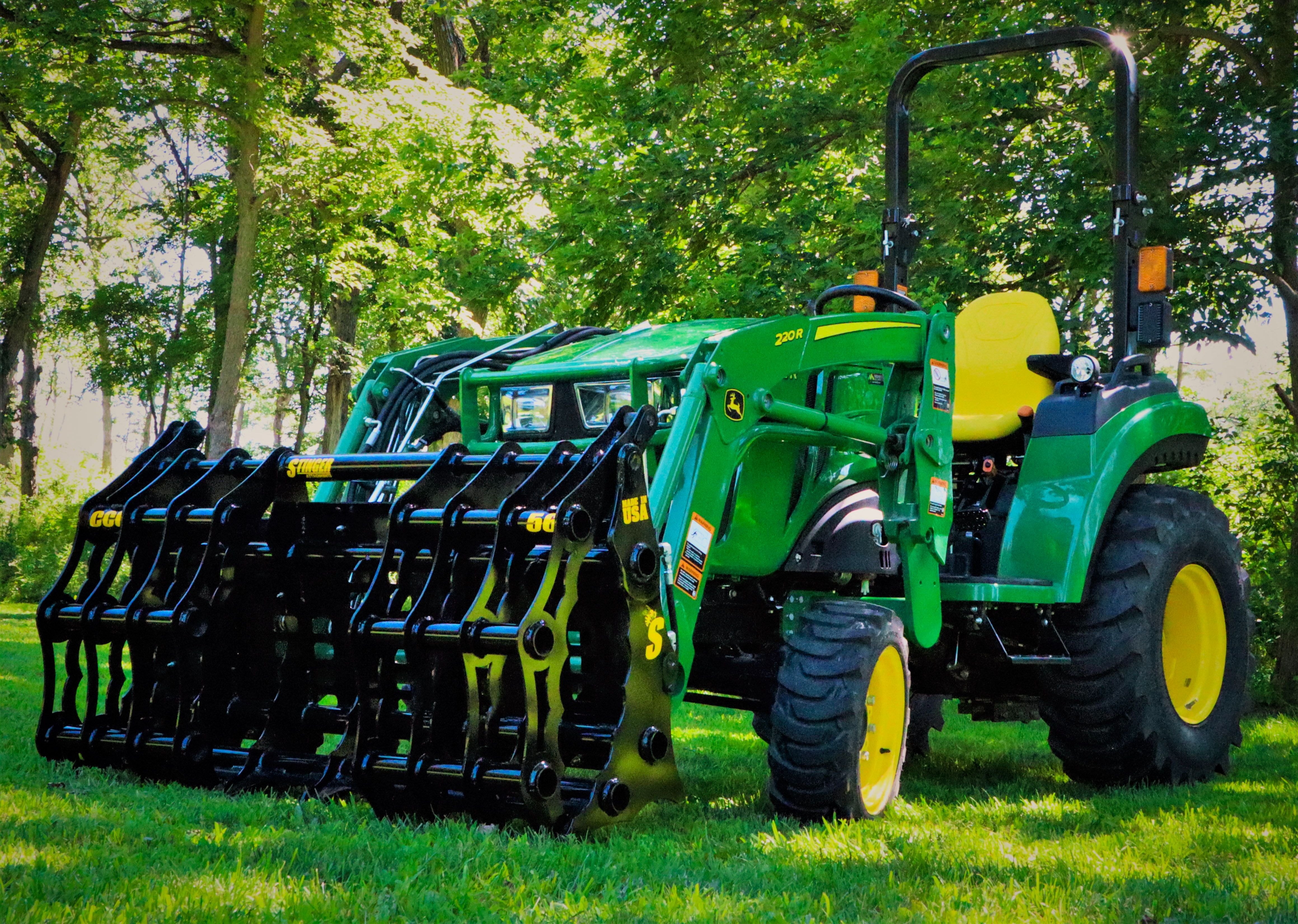 The Stinger Attachments Compact Clam Grapple Bucket is the perfect grapple attachment for landowners and do-it-yourselfers. The CCG compliments most major brands of compact tractors, small skid steers, and small utility tractors and is intended for 25-50 hp machines. The CCG clam grapple is ideal for homesteading, land maintenance, land restoration, and land management. The CCG grapple is built with high tensile AR200 USA Steel and weighs approximately 360#, keeping it lightweight in order to maximize most compact tractor loader lifting capabilities while maintaining strength to hold up to the toughest use. This model is also offered in a 66" width and with several mount plate options which include universal quick-attach (skid-steer style), John Deere, H120, D120, 200, 300, 400 series loaders, Bobcat MT, and Universal Mini Mounts. Top uses for the clam grapple are moving logs, gathering & moving brush & debris, root removal, rock removal, land clearing, and much more. Compatible with most major brands including John Deere, Bobcat, TYM, Kubota, Bad Boy, Branson, Kioti, Mahindra, Massey Ferguson, YanMar, Ford, New Holland, and many more. This item is made with USA Steel and backed by a 2 year warranty. Check out our website: https://stingerattachments.com/buy/ccg-56-compact-clam-grapple/ or call us at (507) 273-7497 for a shipping quote or for more information!