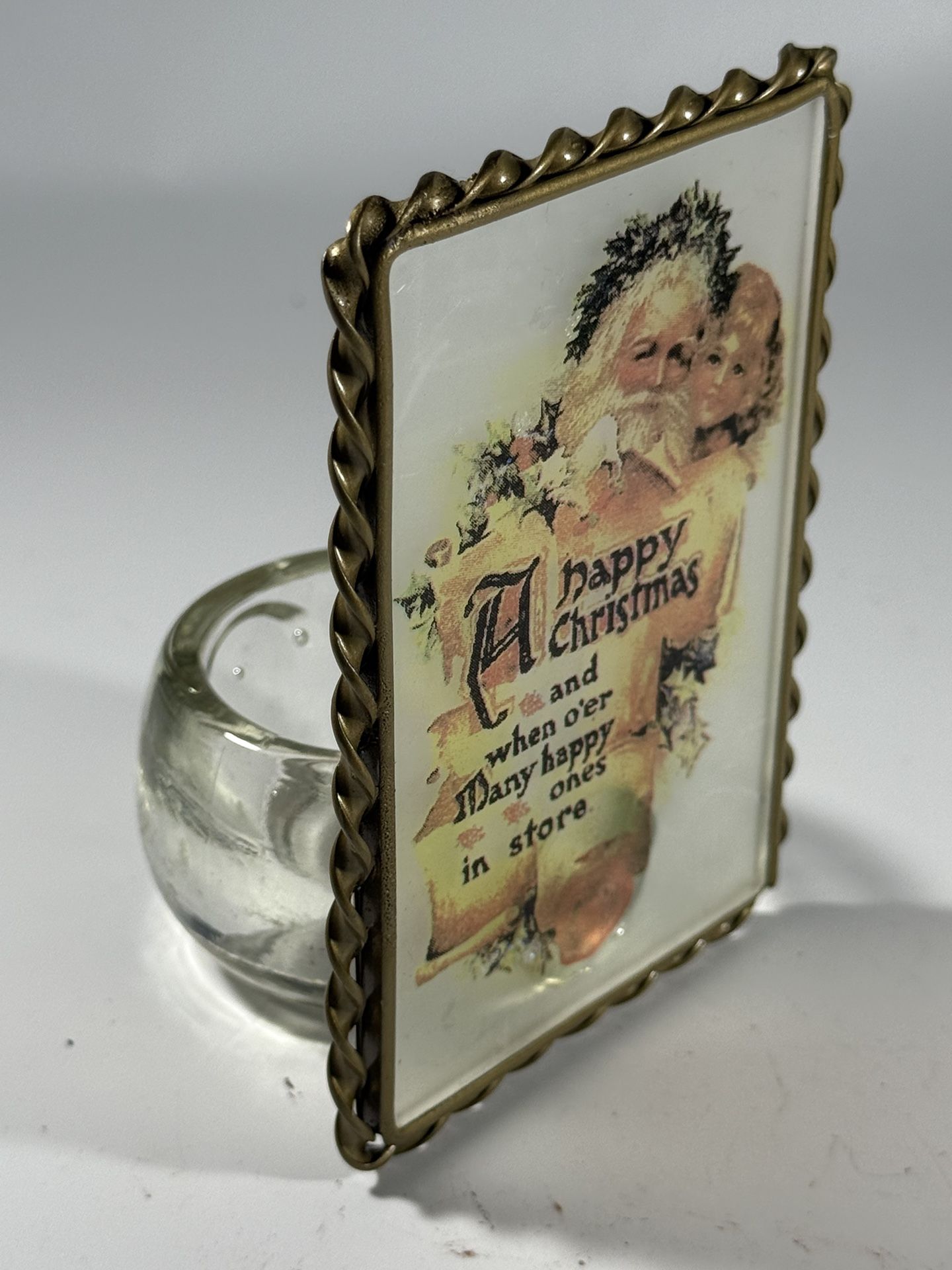 Old World Vintage Santa Glass framed poem with votive candle holder