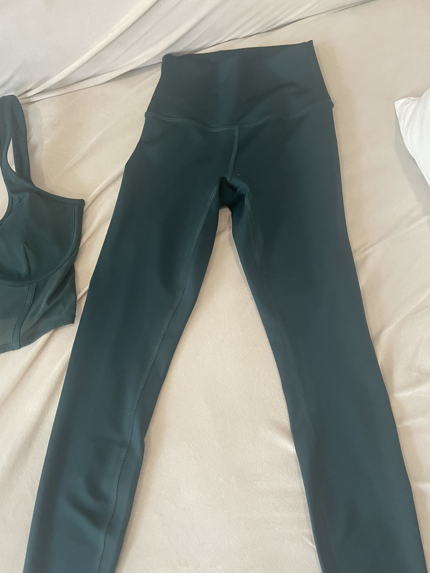 7/8 leggings. Beautiful midnight green. Size XS. Worn once. Only tried on; never worn. Comes with matching corset top in XS (sold separately, but can give discount if purchase both).