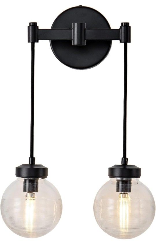New, in original box & packaging- 2-Light Matte Black Wall Sconces Wall Lighting 2 Glass Globes