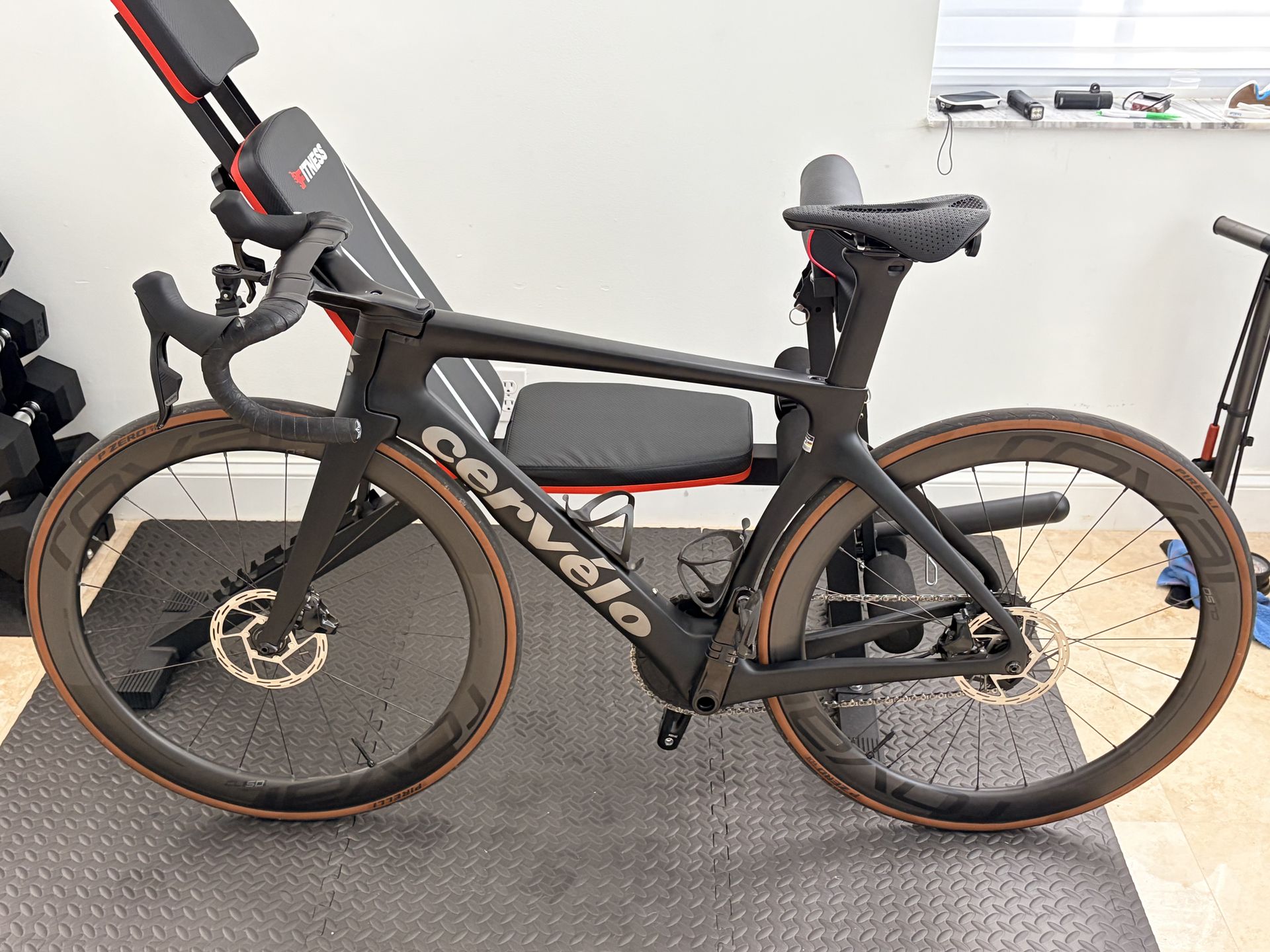 For Sale: Cervélo S5 full Carbon– Barely Used / Excellent Condition with less than 500 miles on it. Bike is extremely fast, light and true head turner. *Price: $4650 OBO *Size: 54 cm (ideal rider ~5′7″–5′10″) *Condition: Barely used, excellent mechanical, and physical condition fully tuned at local bike shop and ready to ride *Group Set: SRAM Rival 12-spd electronic shifting *Wheels: Upgraded Roval Rapide full carbon clx wheelset *Tires: Brand Pirelli P Zero Race TLR Tubeless setup already. Happy to answer questions or provide more pics if needed. Dont ask if still available. If you see it it’s available. Priced to sell! Saddle pictured will be replaced with Specilaized one Pedals, bottle cages not included . PC and rear light mount will be included